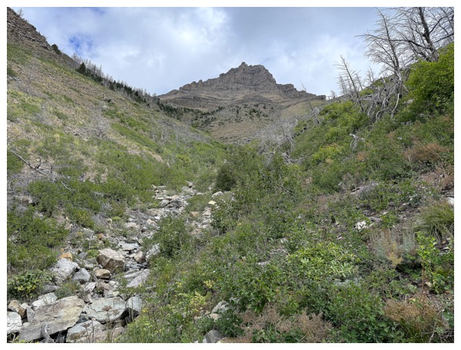 Out of the drainage for good. The terrain on the left looked awful so I went right.