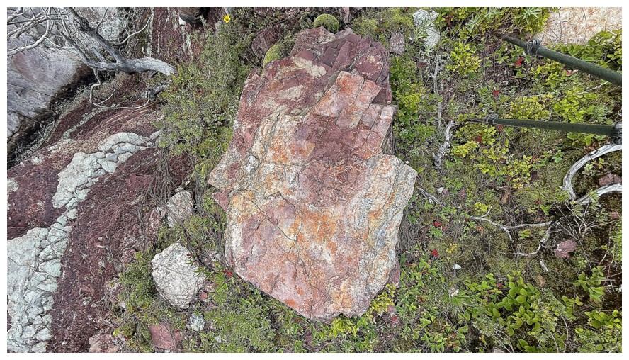 The first part of the descent involves traversing down to the right where the interesting rock sits