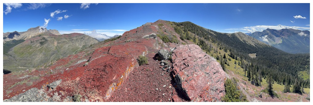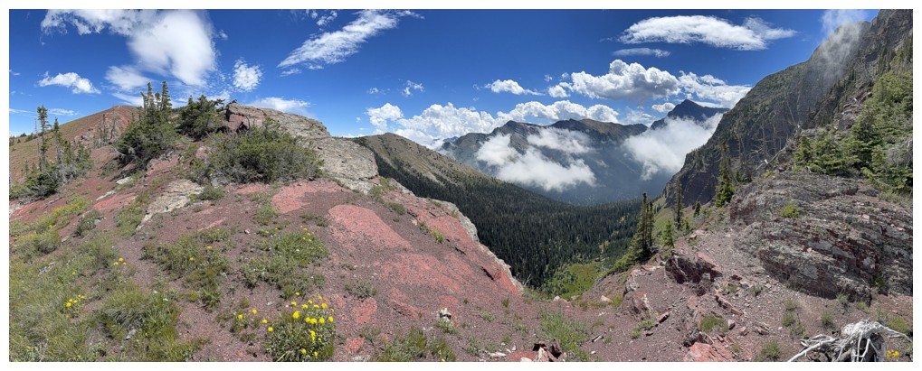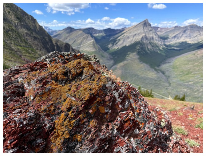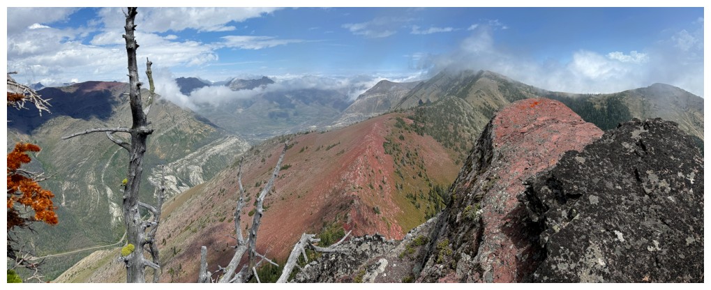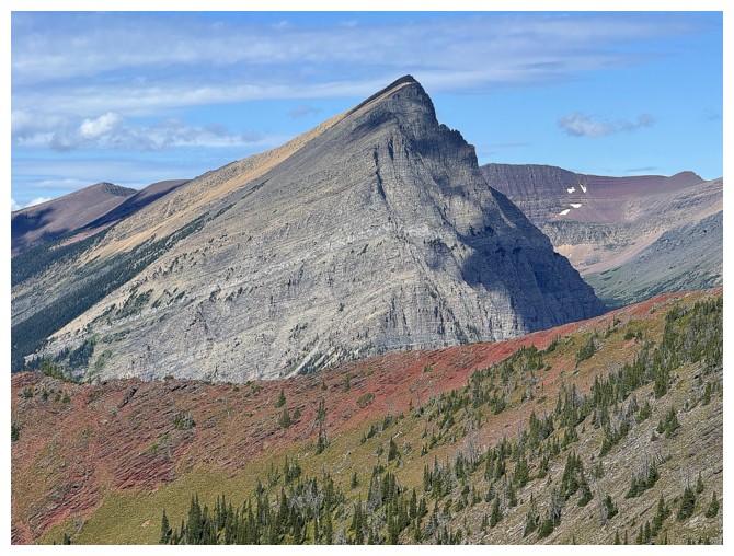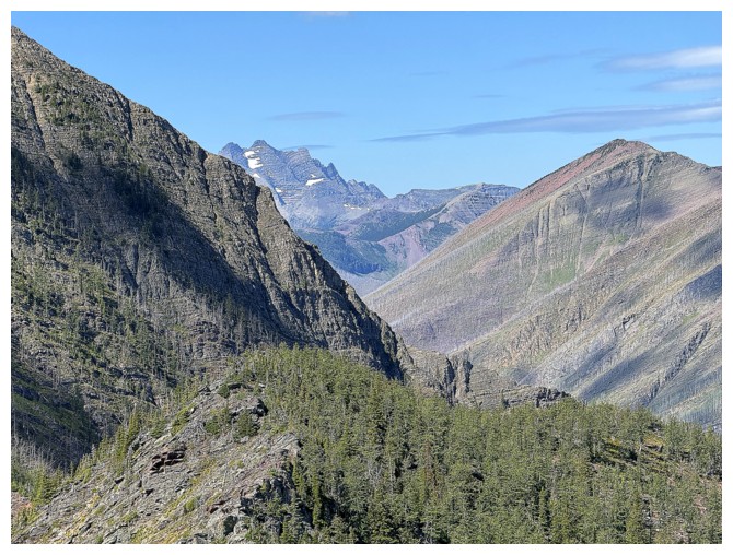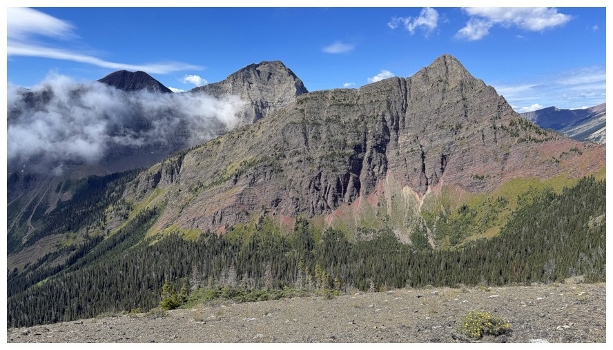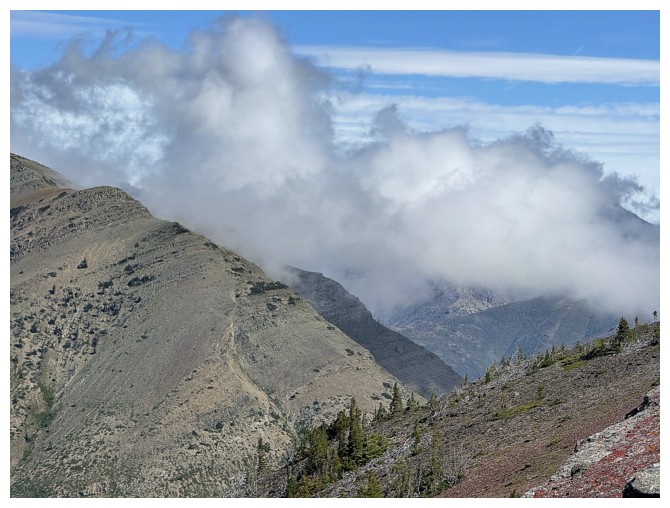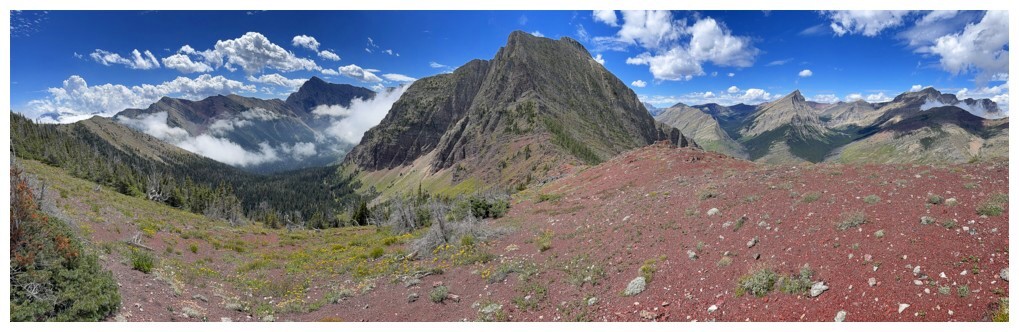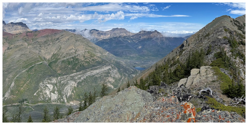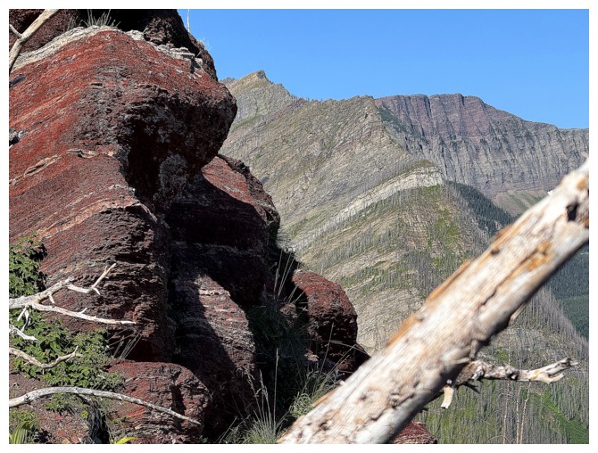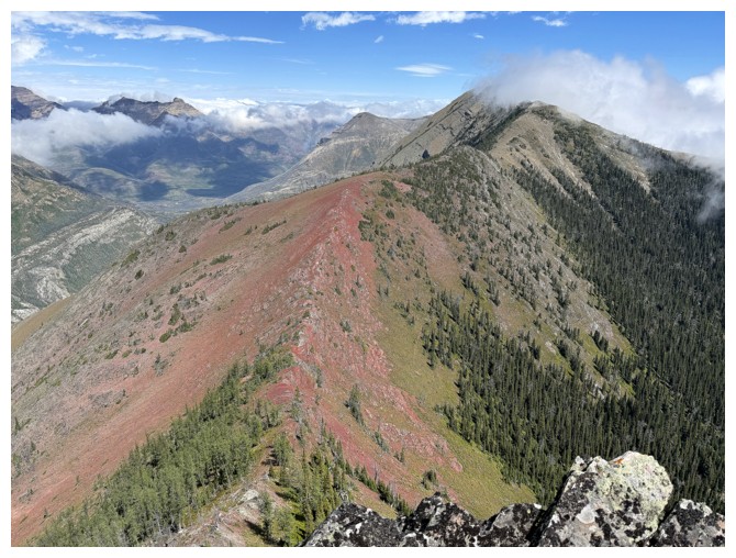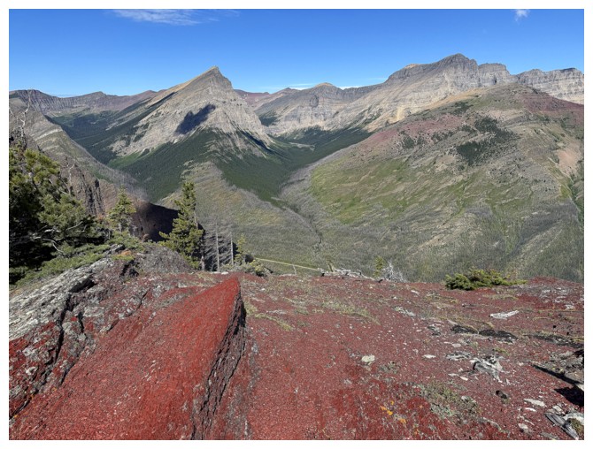 views over to the Waterton townsite and of course a big splash of red rock along the ridge