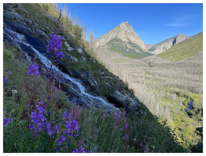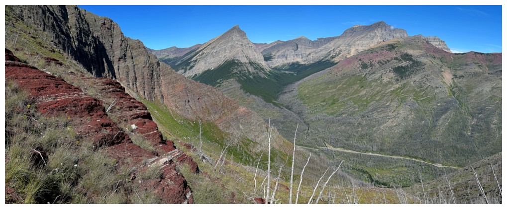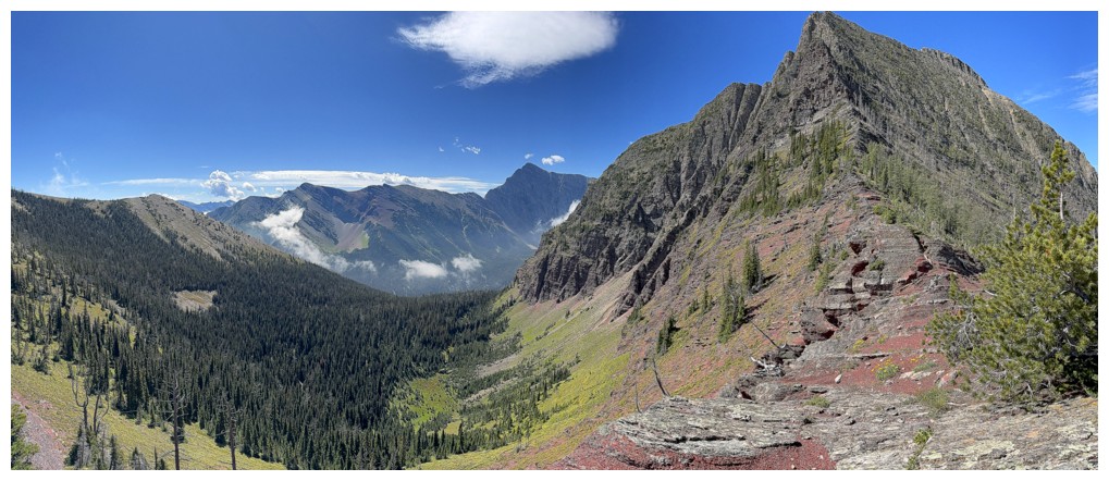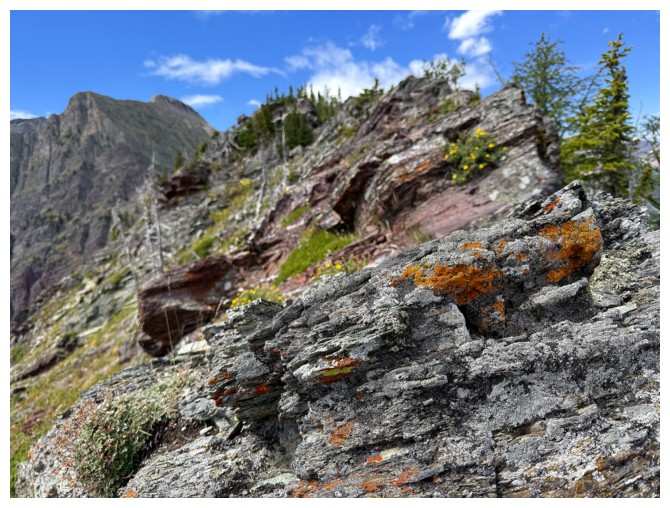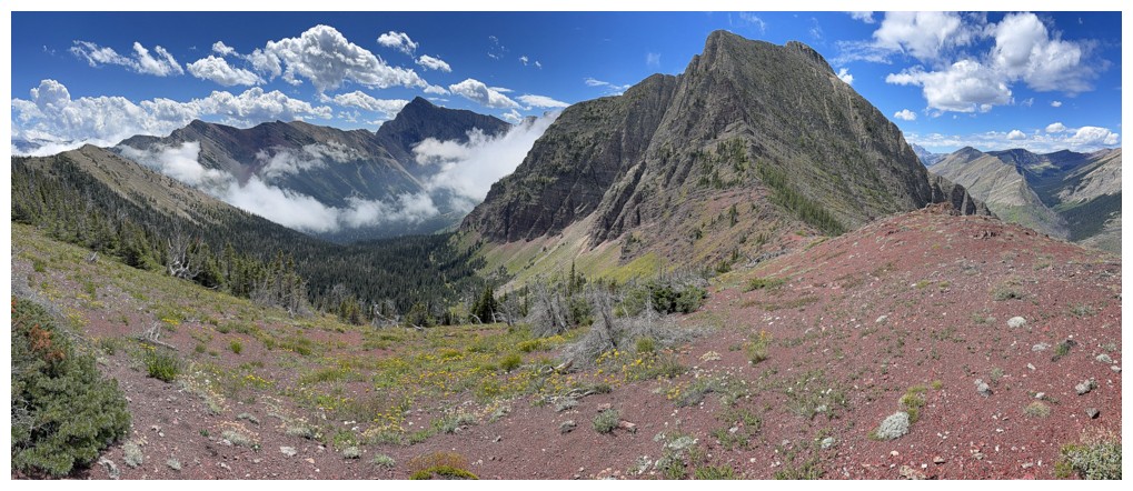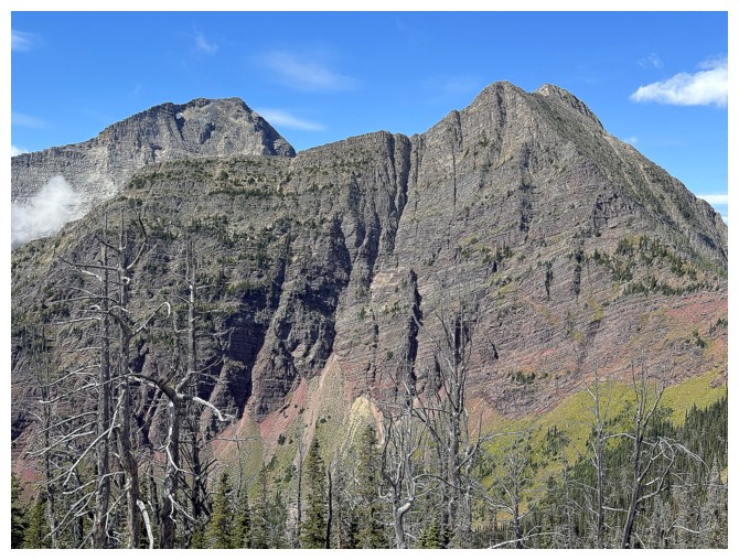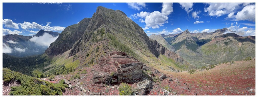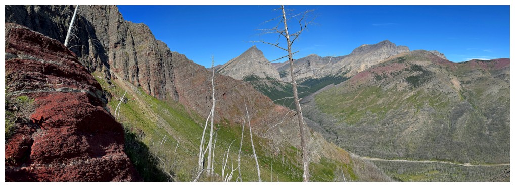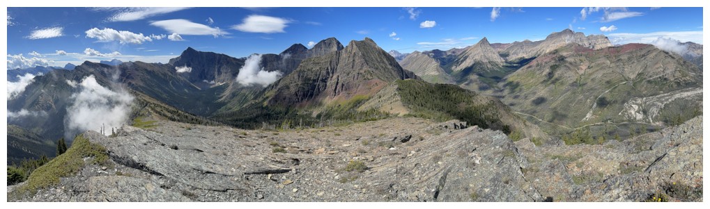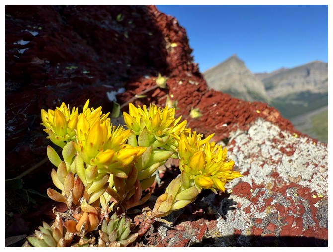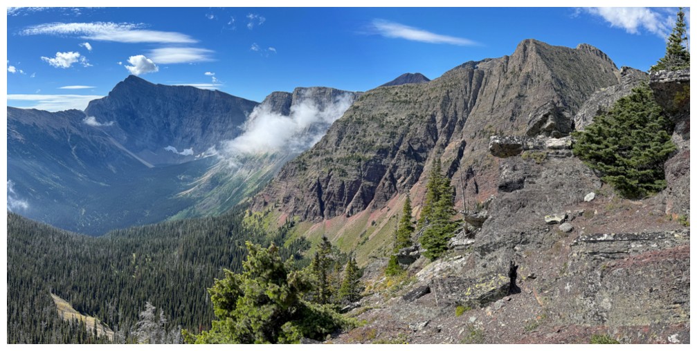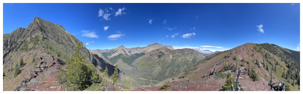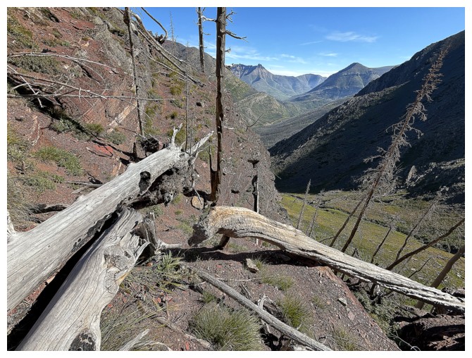views over to the Waterton townsite and of course a big splash of red rock along the ridge
