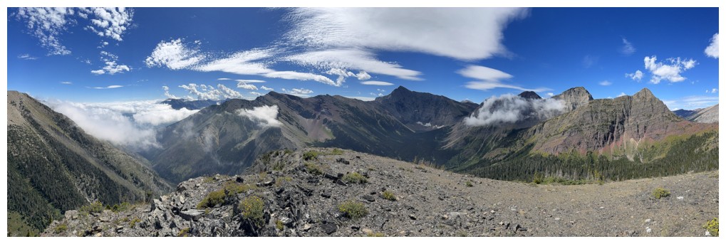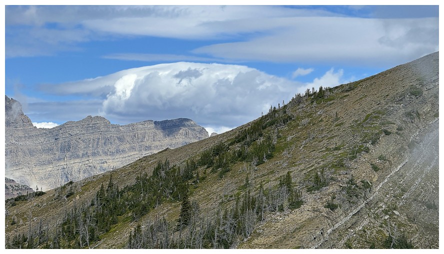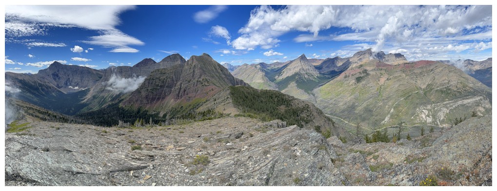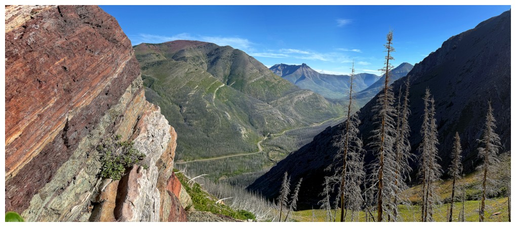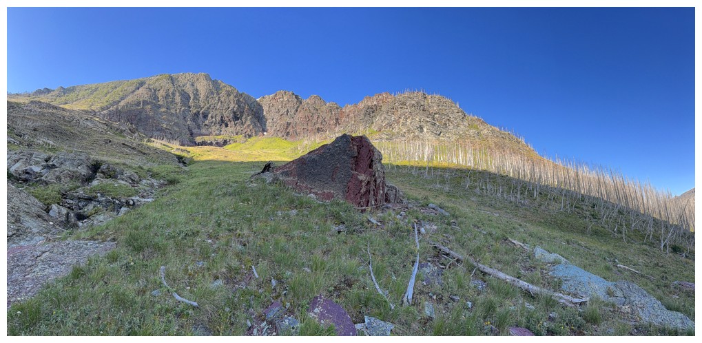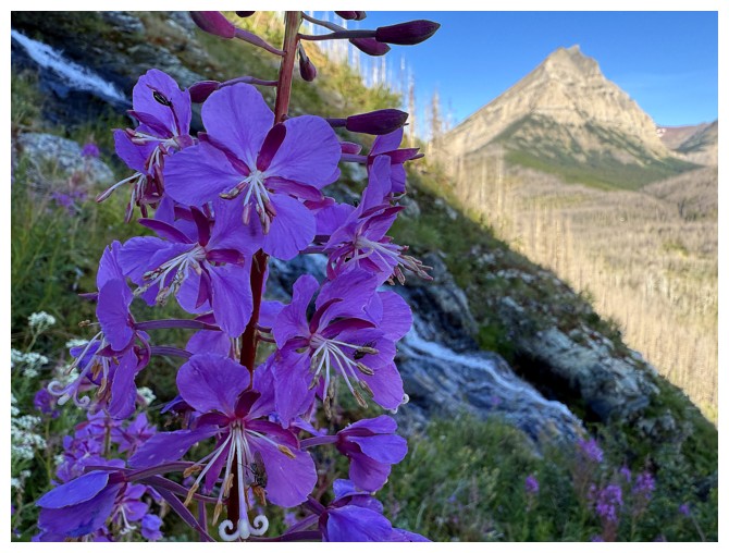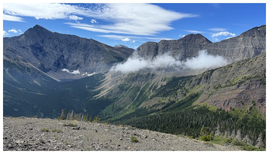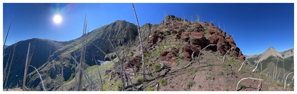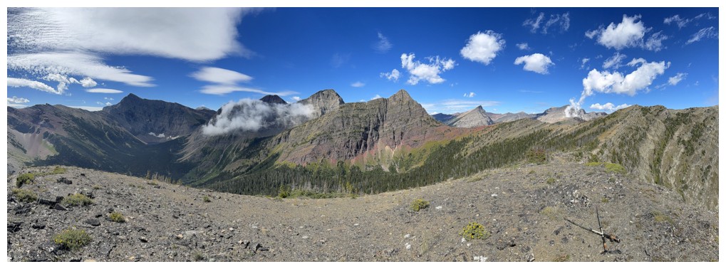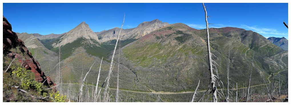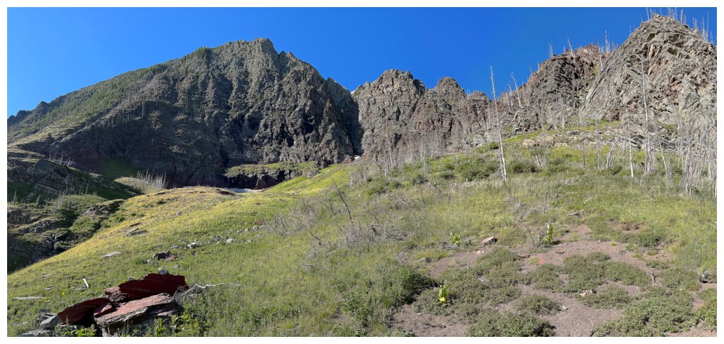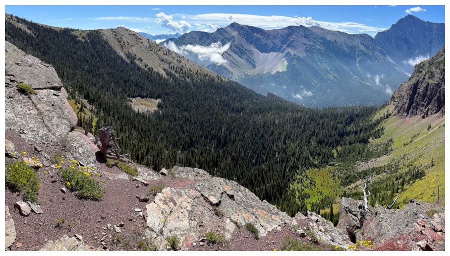 views over to the Waterton townsite and of course a big splash of red rock along the ridge