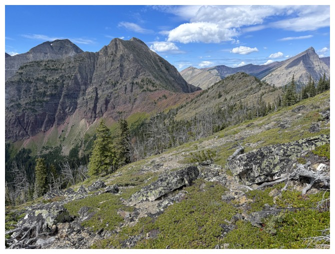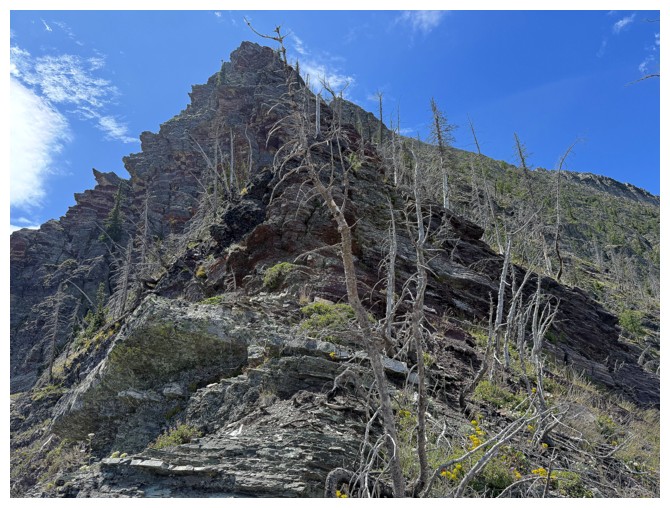 ridge, steep rock bands blocking the route. A little zigging and some zagging later
