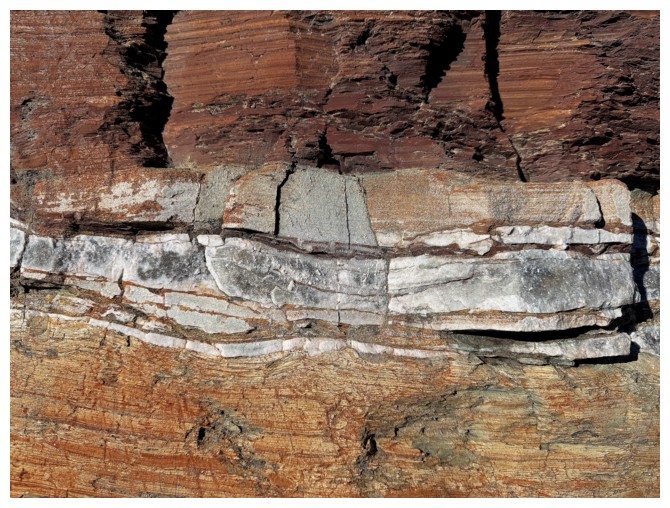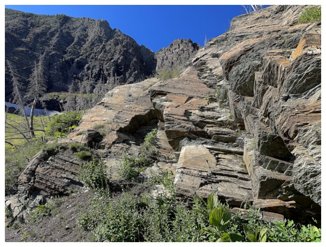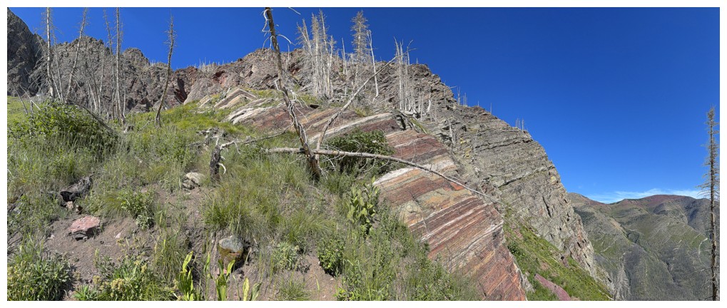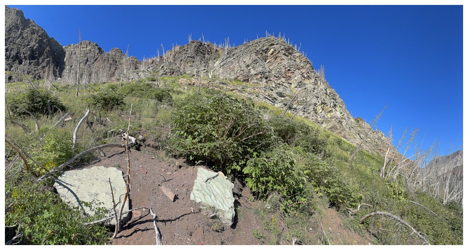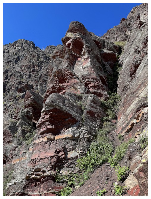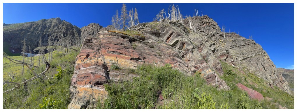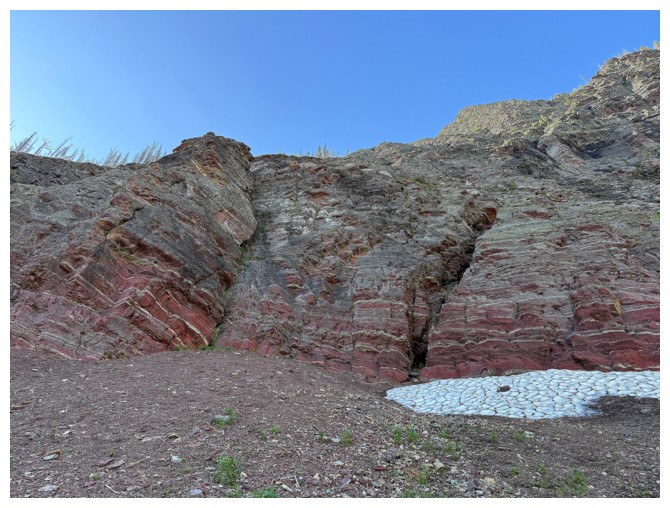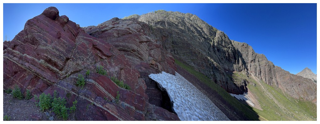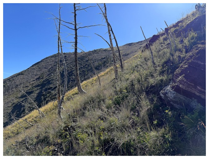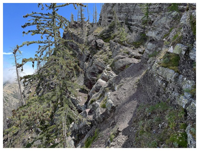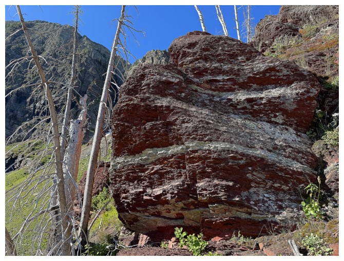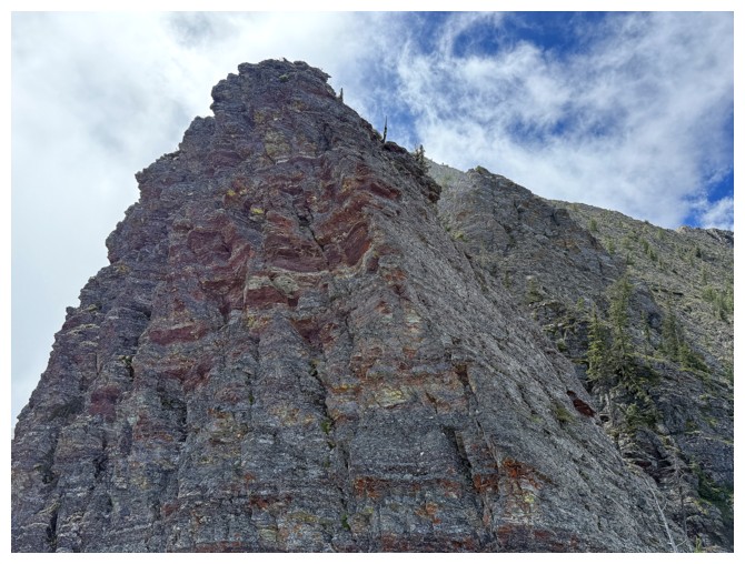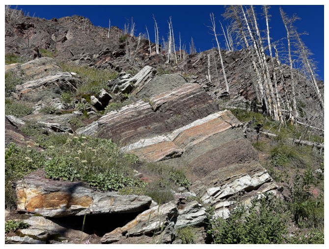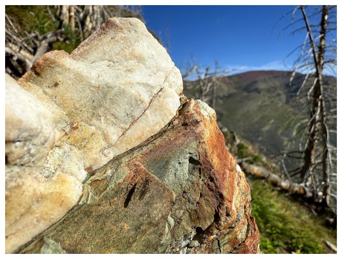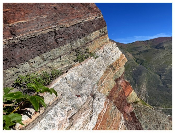 The red argillite band that prompted me to ascend The Senator several weeks earlier