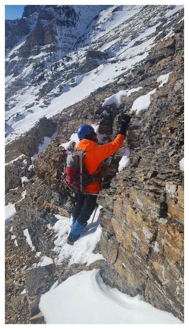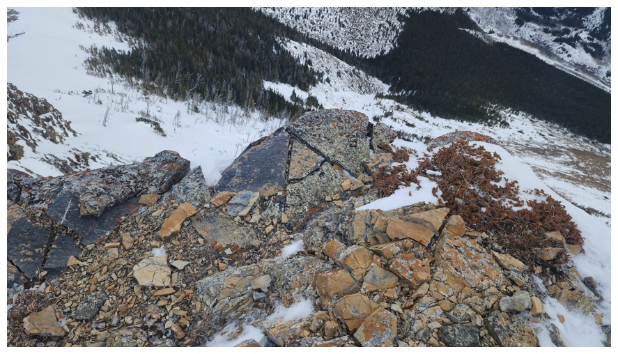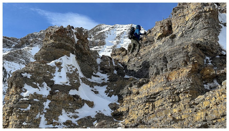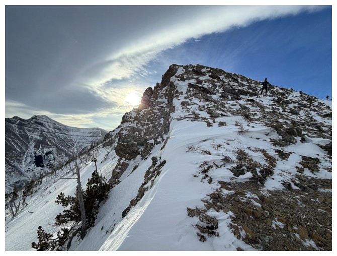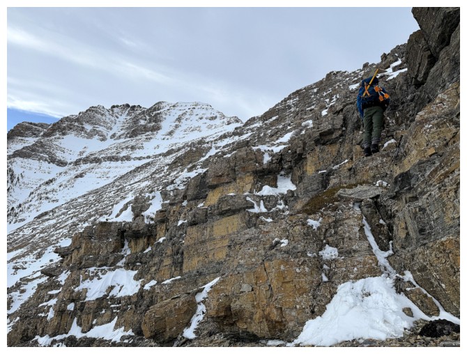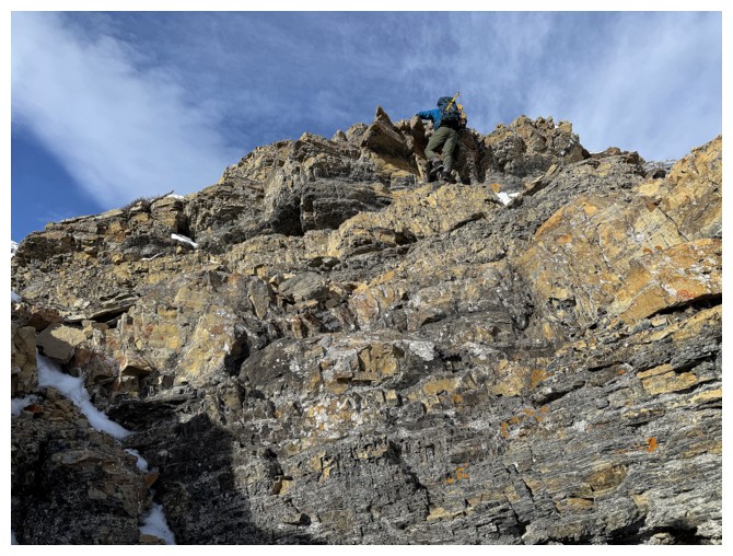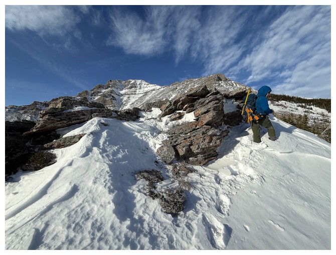 With the exposure over the right side gone, we were able to follow the ridge for the remainder of the way (photo by Dave)