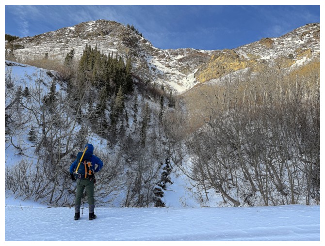 Up we go. We will ascend the left side of the drainage that goes up the middle. I did the right side in 2022 (photo by Dave).
