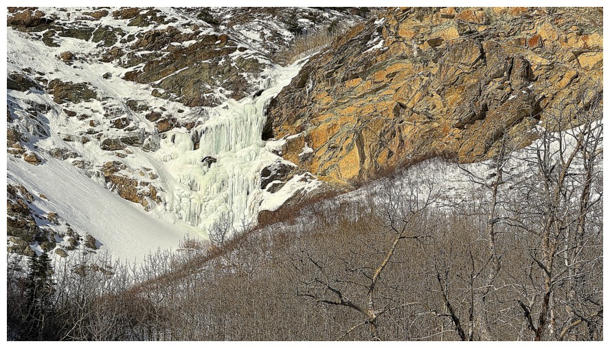 Dave checks out the more significant frozen waterfall further along the road