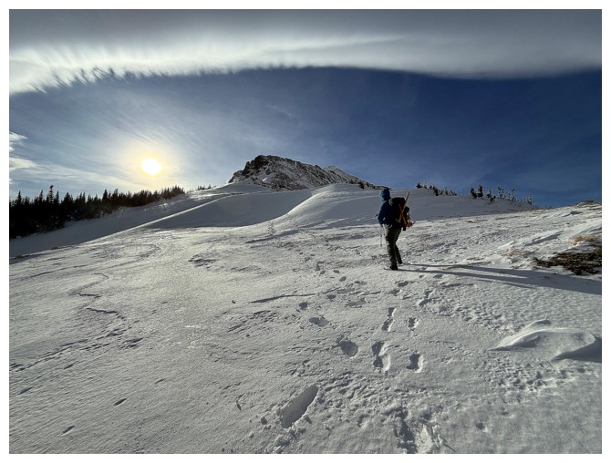 A section of deep snow. I broke trail for about 5 minutes and then Dave broke it for the remaining 295 minutes of the day!