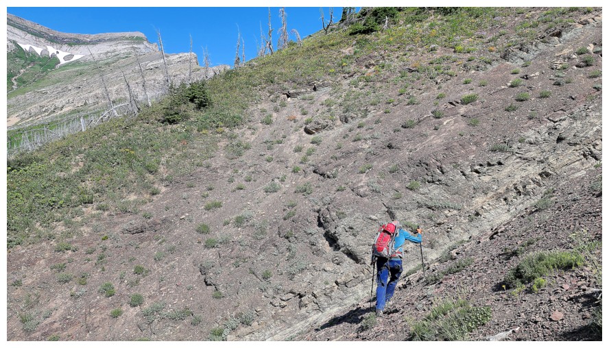 Leaving the valley bottom onto the southwest side of SE4 (photo by Dave)