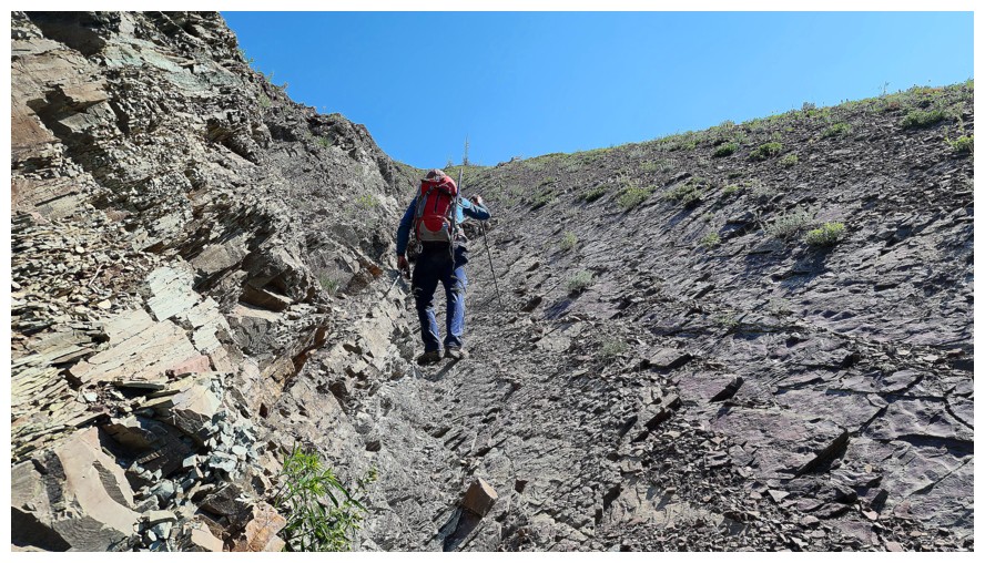 slabby rock band high up on the route. As such we packed a rope, harnesses, and