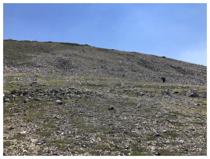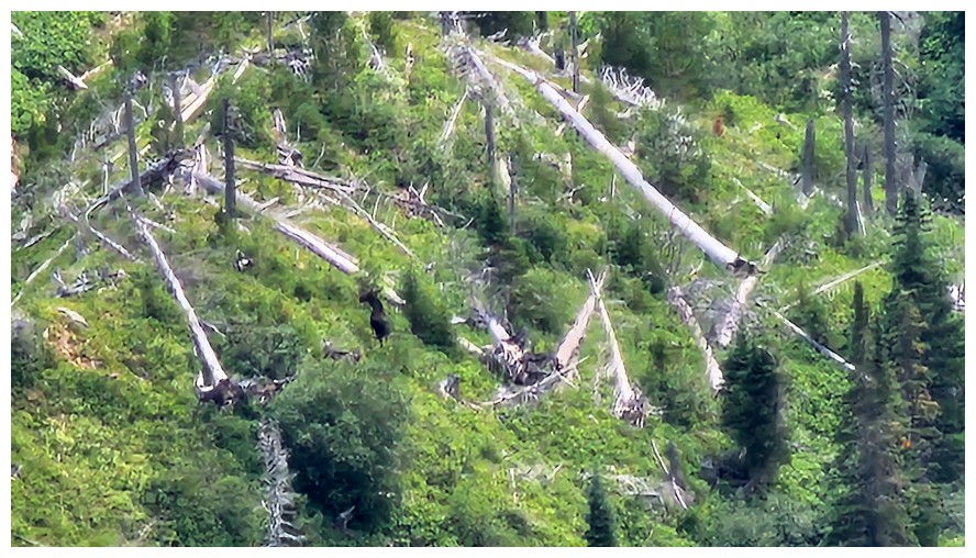 Zoomed-in shot of a moose far below. Initially we thought it might be a bear (photo by Dave).