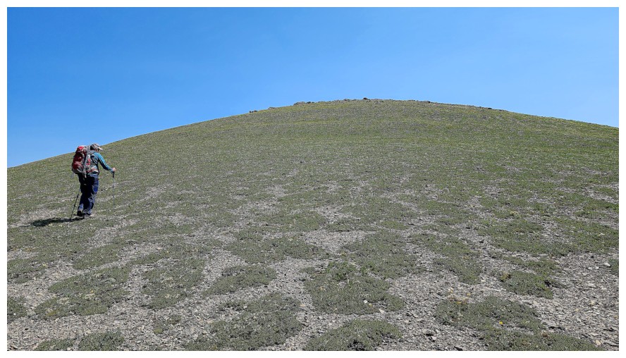 Approaching a shallow gully that we will use to gain some elevation quickly (photo by Dave)