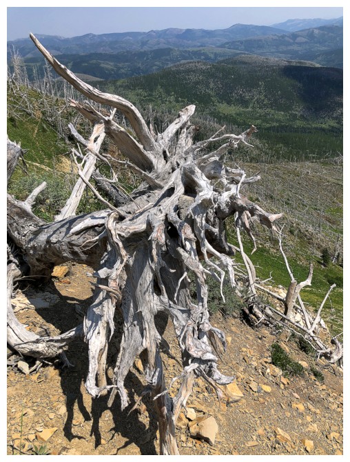 We both walked atop this huge fallen tree to try to escape the horrors of the terrain around the tree (photo by Dave)