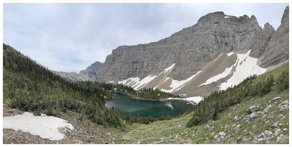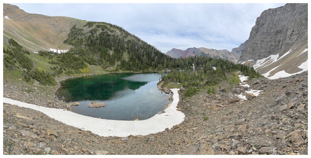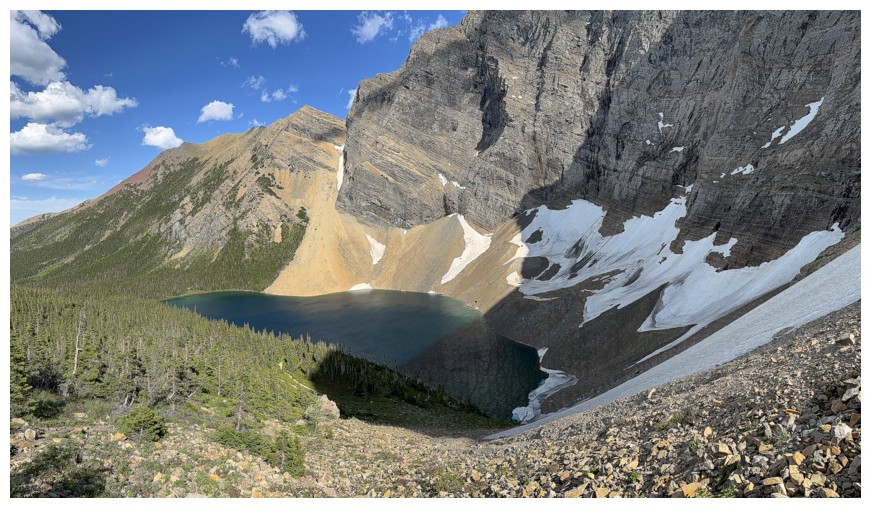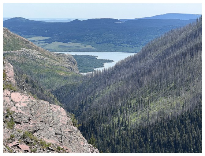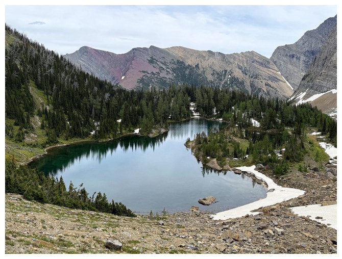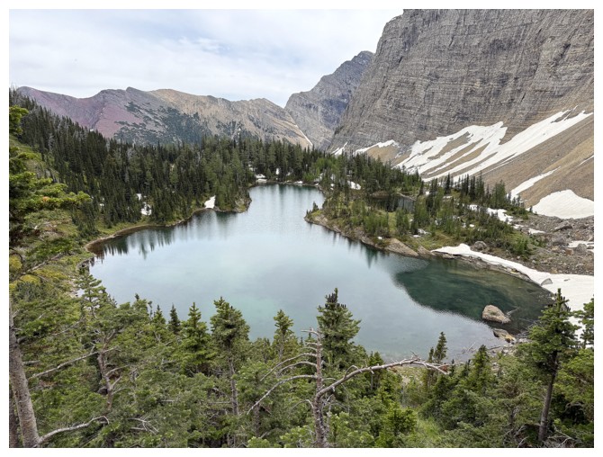 4.5 hours after leaving the parking lot, I arrived at a point above the lake.
