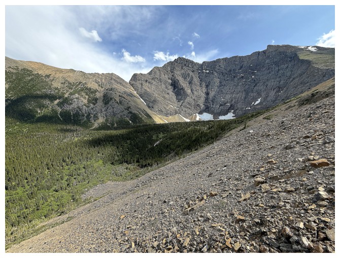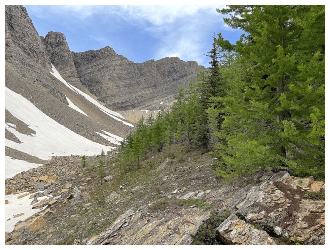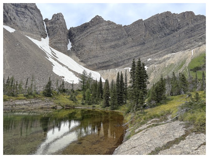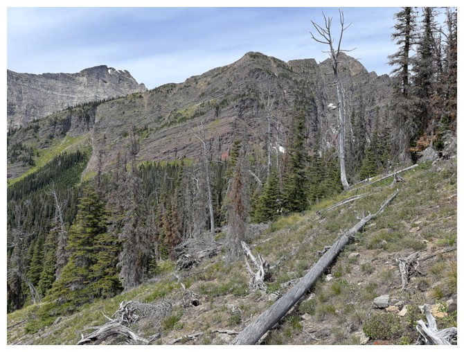 The ridge in front leads to The Senator. I need to be on the other side of that ridge where Dormaar Lake sits.
