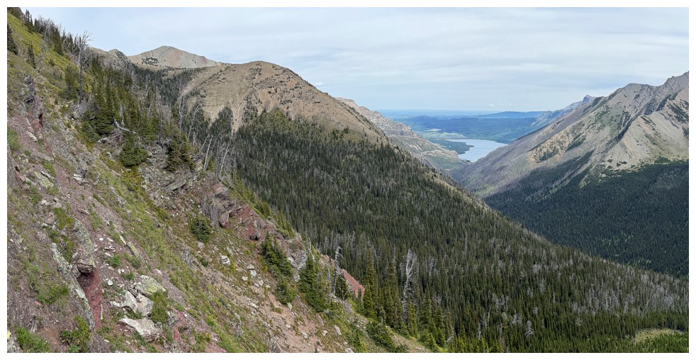 The very welcome sight of Waterton townsite and Vimy Peak