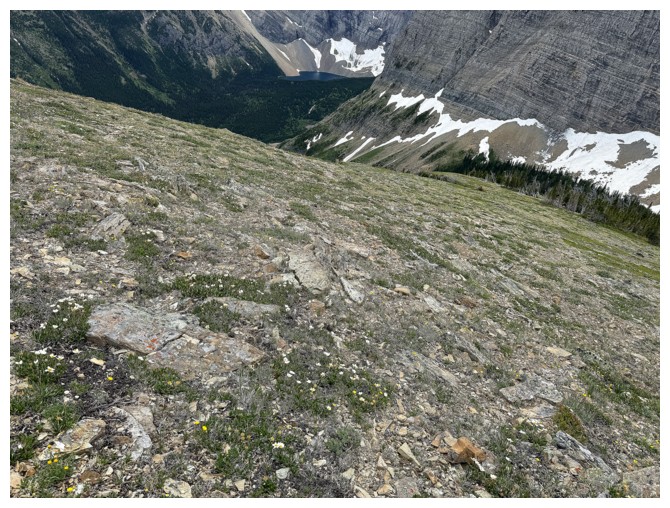 Out in the open and the other alternate descent route is visible