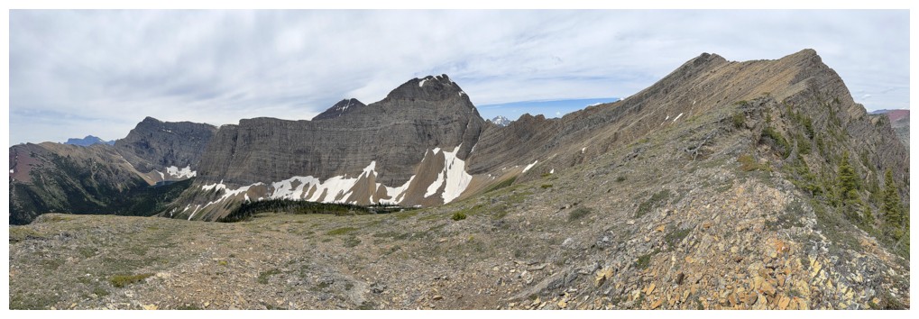 On the ridge above Dormaar Lake. The summit of The Senator at the left.
