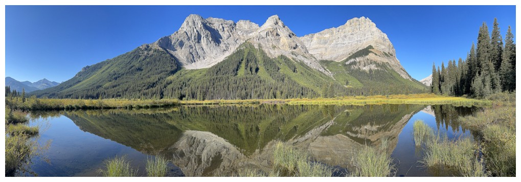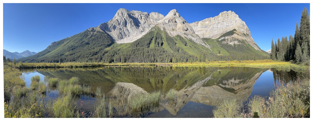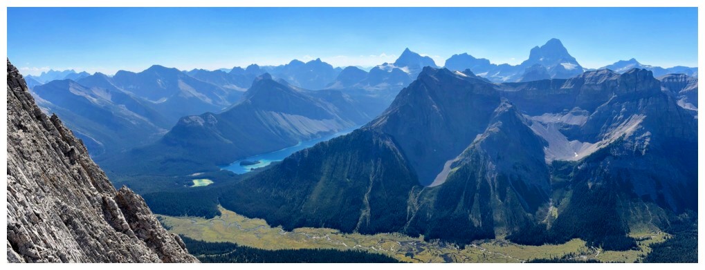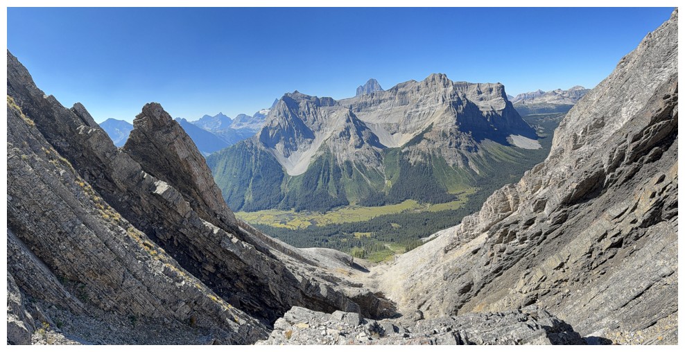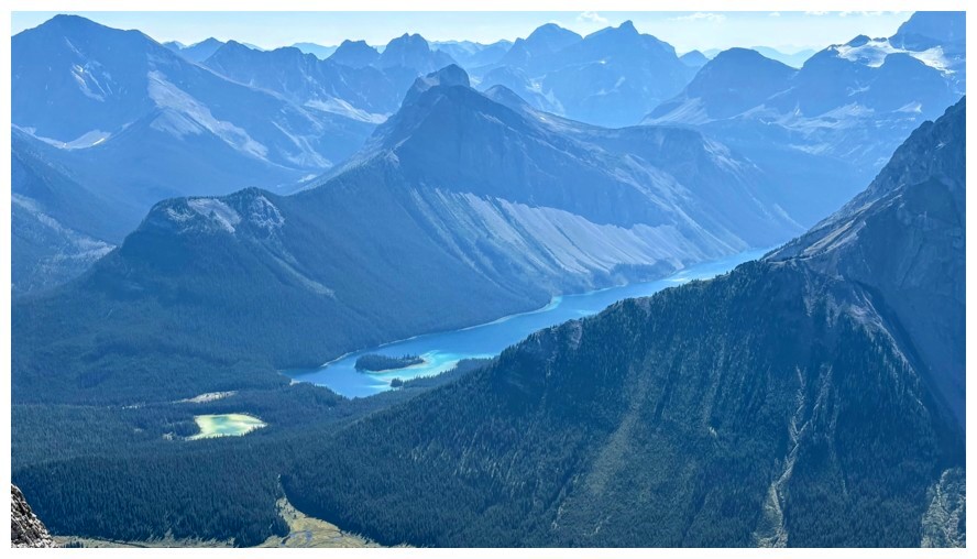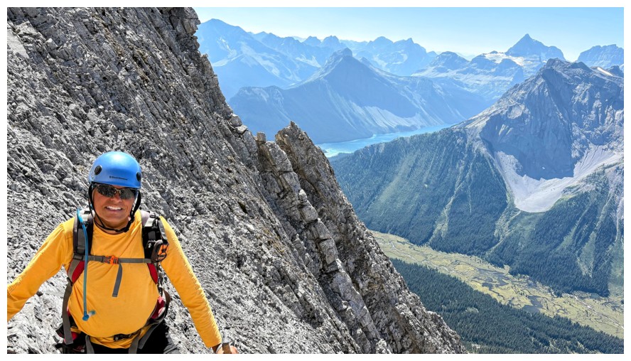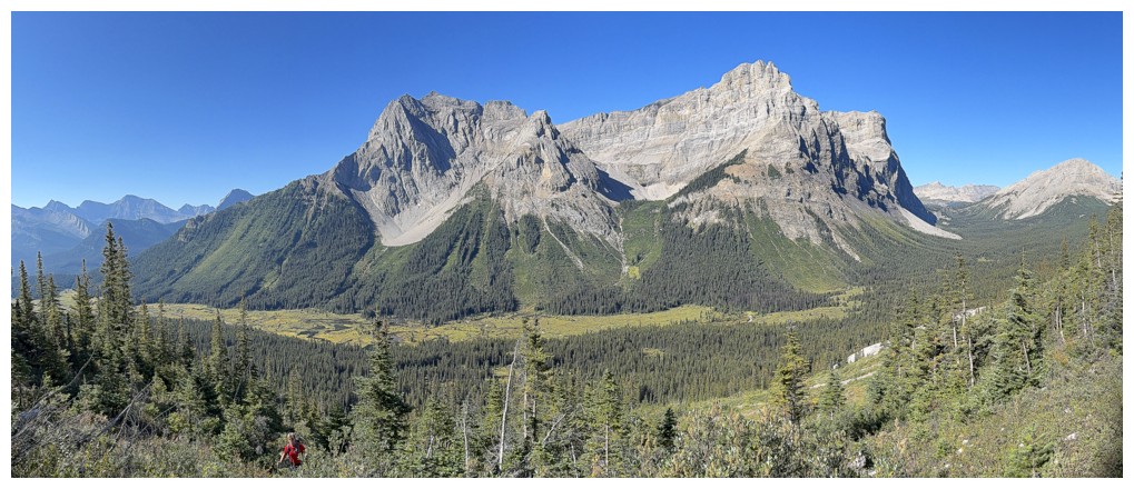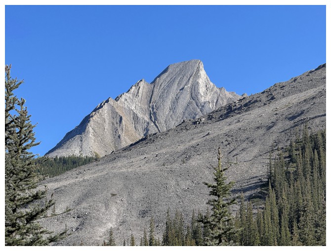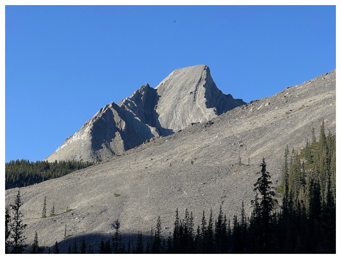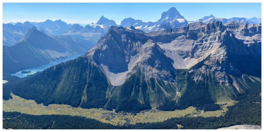 First good view of Mount Assiniboine at the right