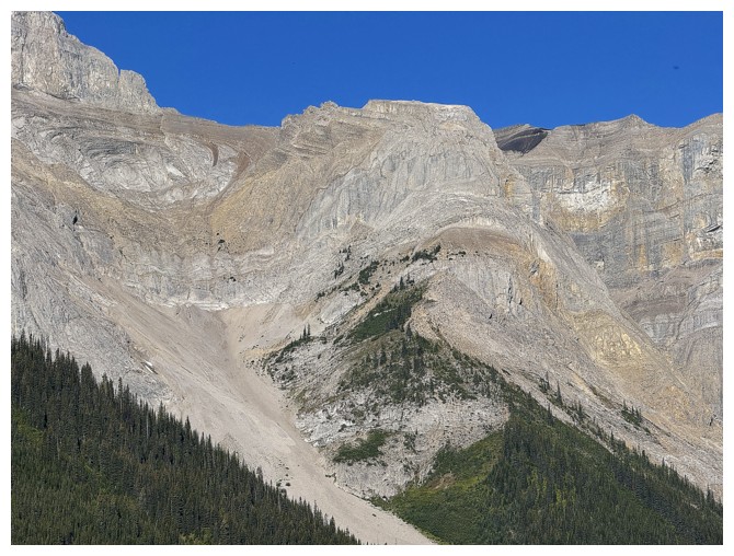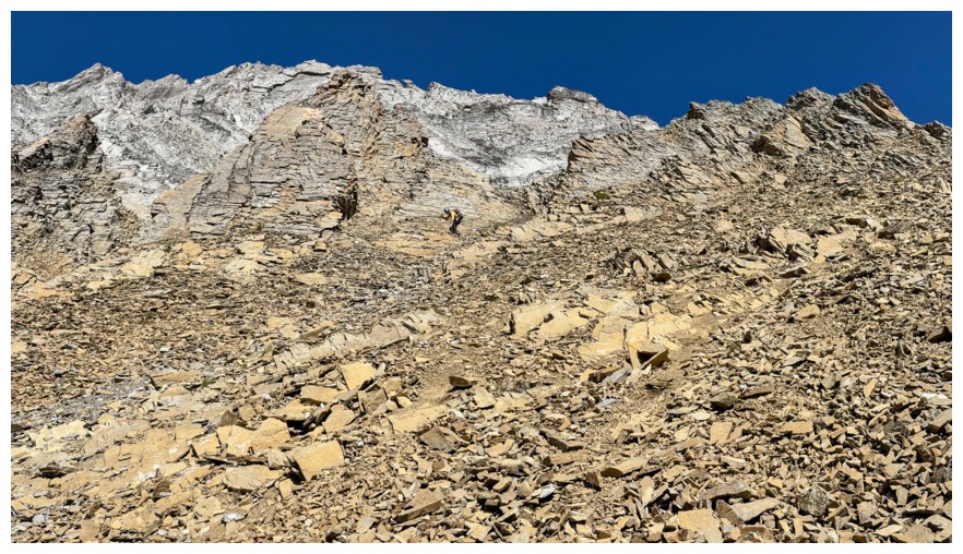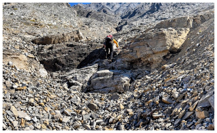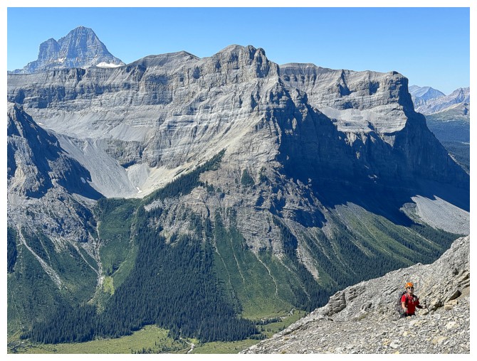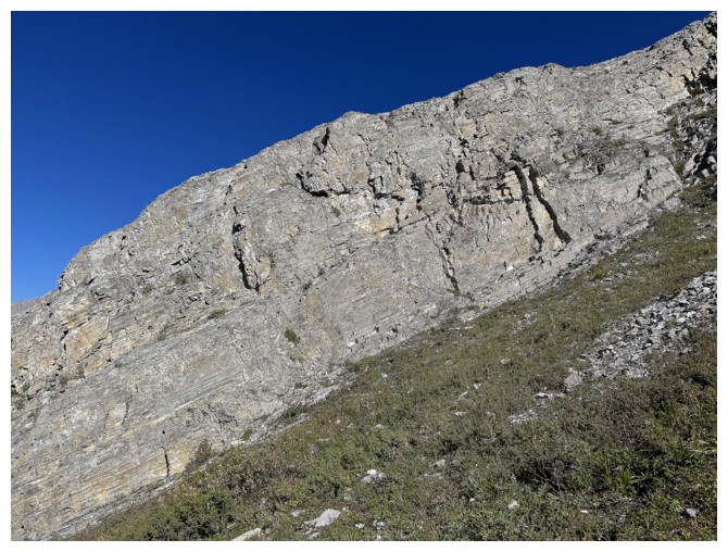 Looking back up the colourful west face (photo by Doug)