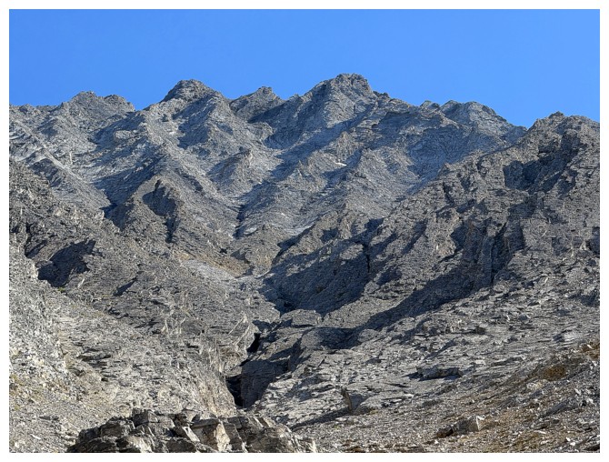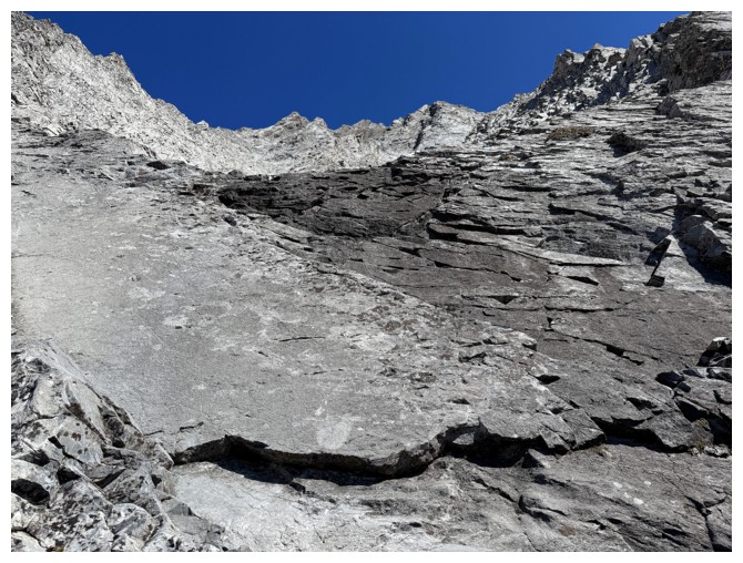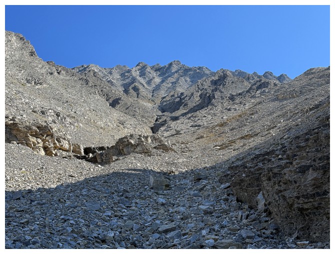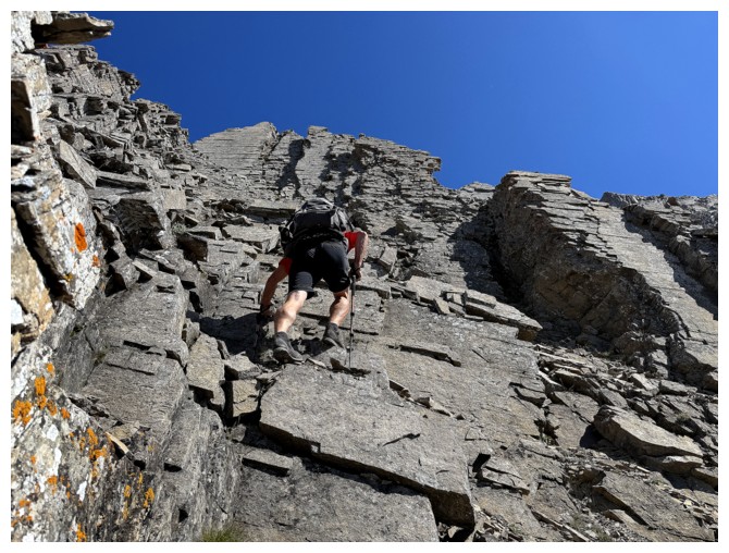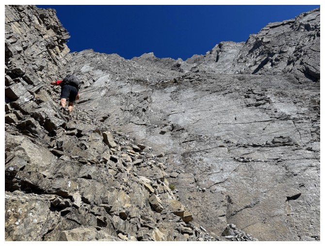 slopes of the objective. The scrambling soon started, mostly up steep but solid rock.
