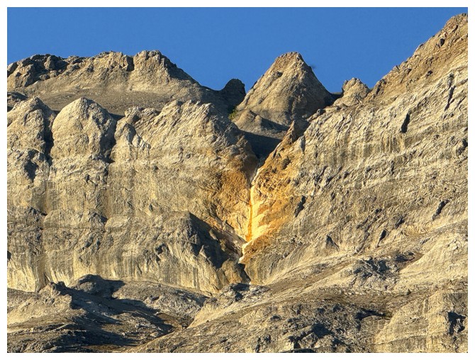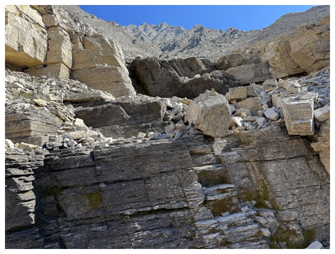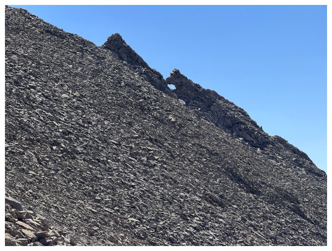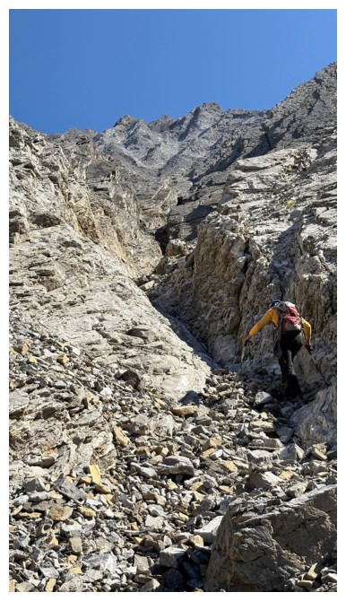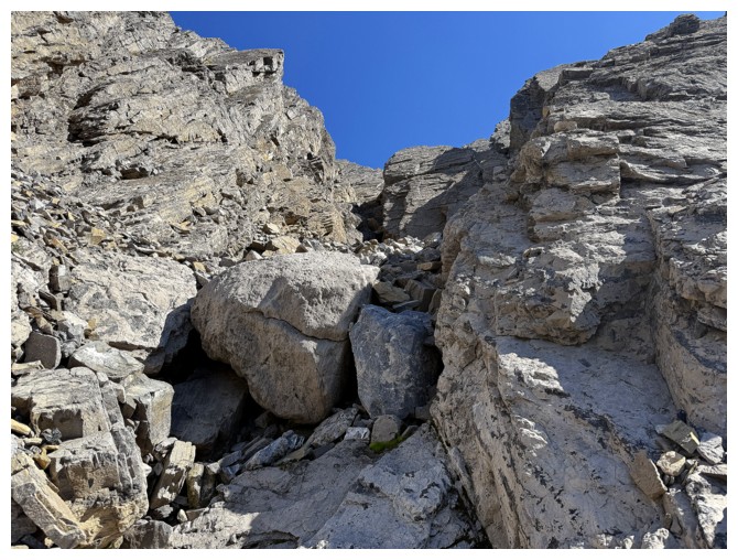 conspicuously absent. Above Doug lay only steeper rock bands that neither of us