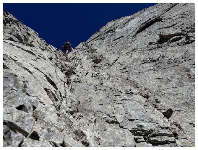 Looking down what we would have to downclimb was far from a pleasant