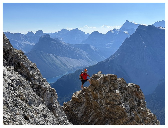 Happy about the view to the southwest and the fact that I haven't tumbled down the mountain and died yet (photo by Doug)