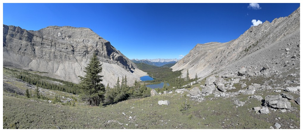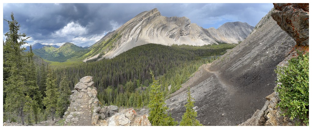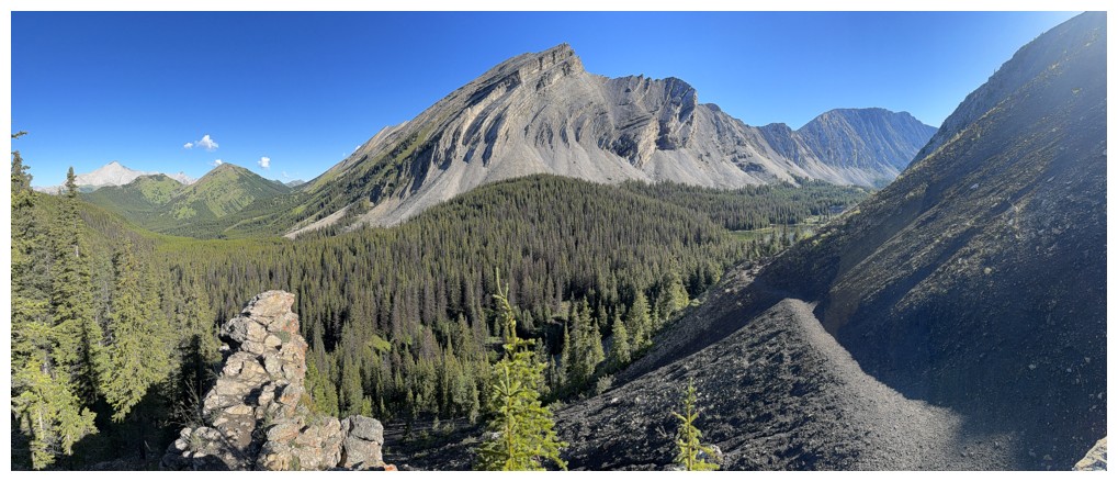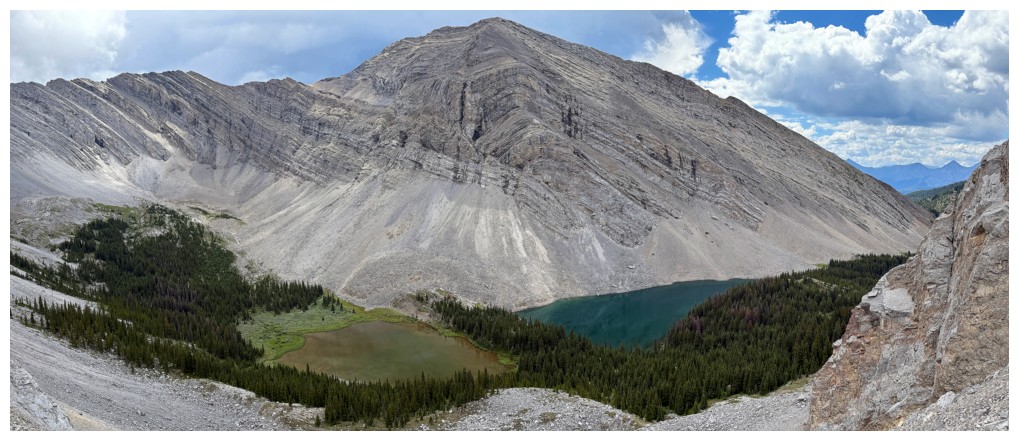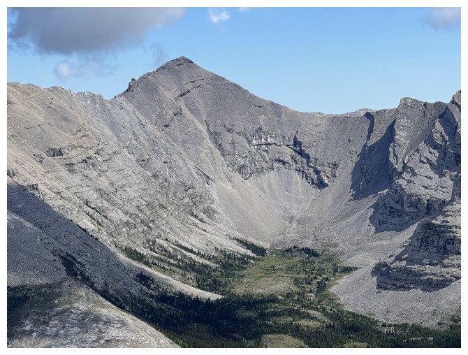 The rewarding view of South Highwood Peak, just before the trail descends to the Pickelejar Lakes