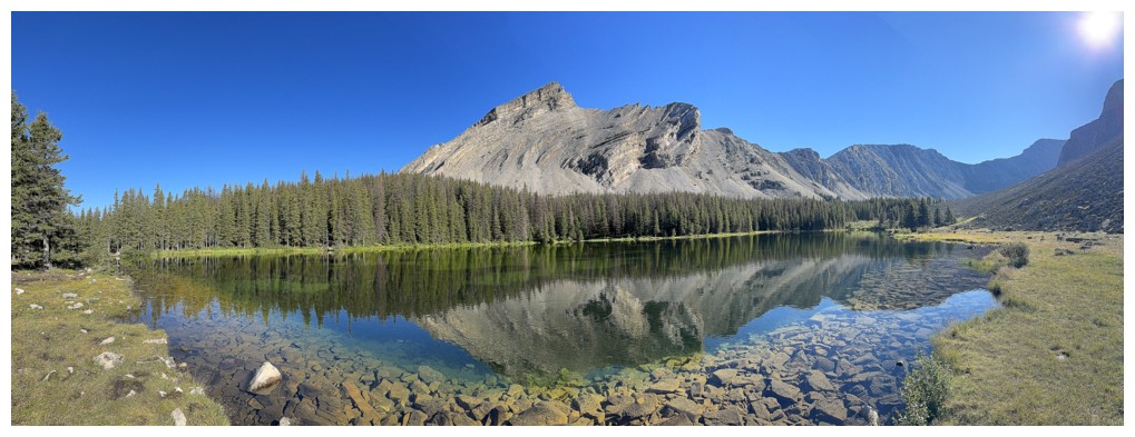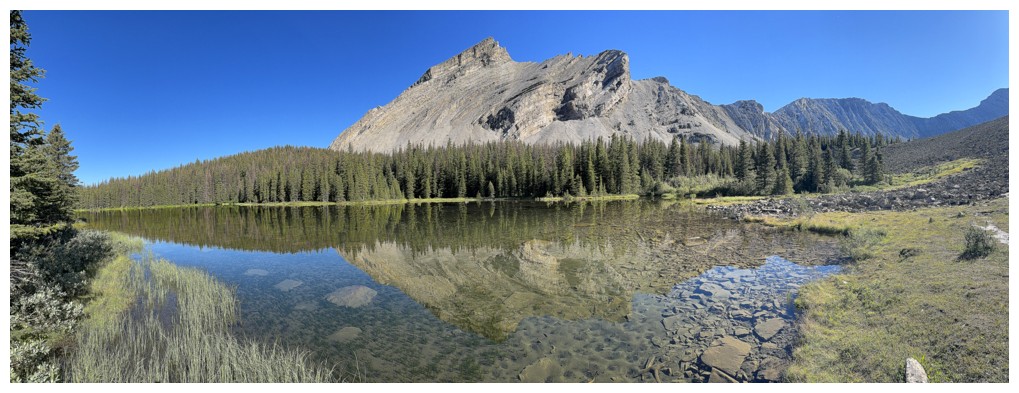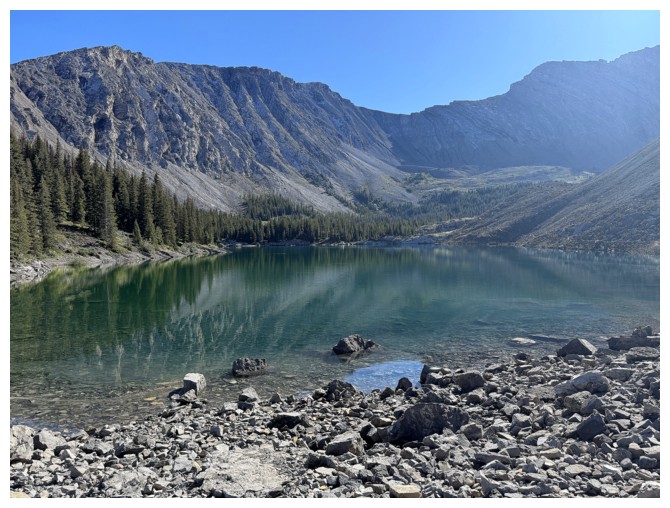 The even more rewarding view of South Highwood Peak reflected in the first lake