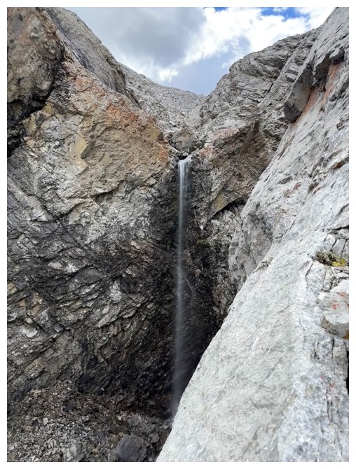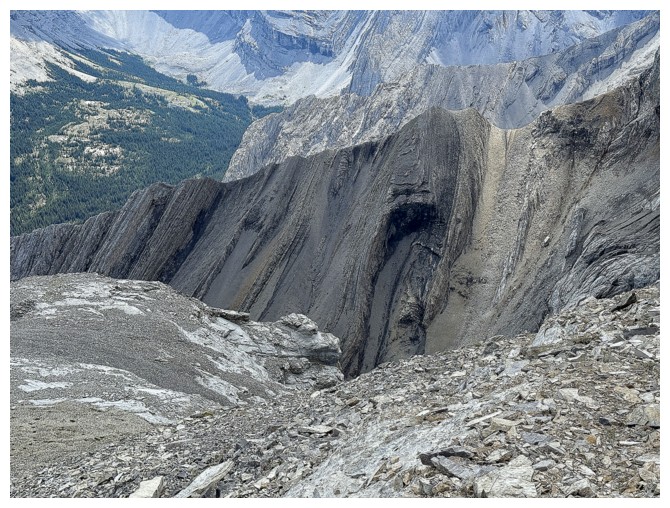 Looking down the route Schierman came up. Very impressive rock wall to pass by.