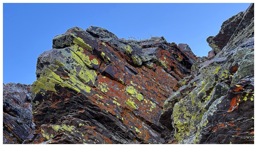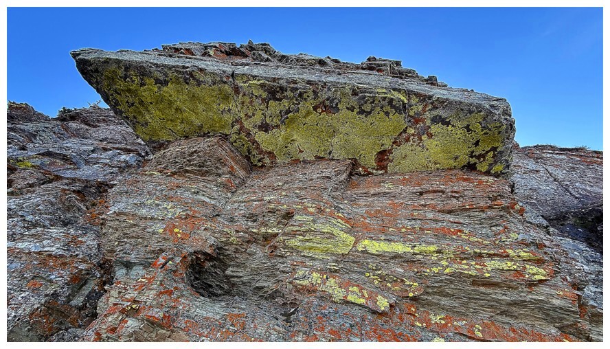 before gaining the top, enjoying some of the best yellow and orange lichen