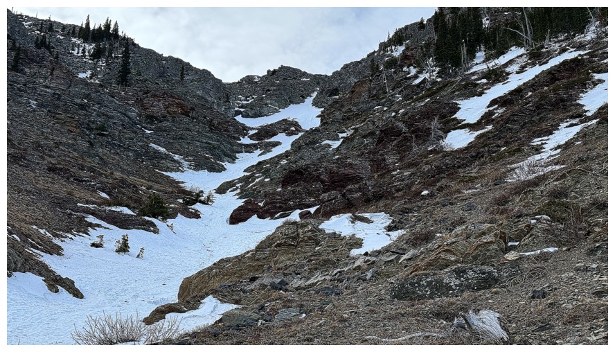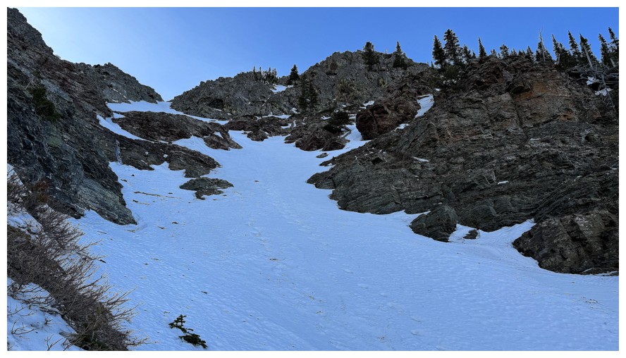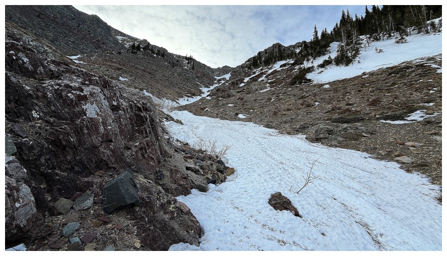 to chop steps up the entire gully to ascend it. Instead, I stuck to the side of