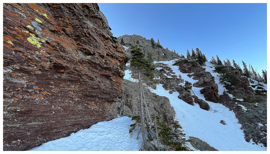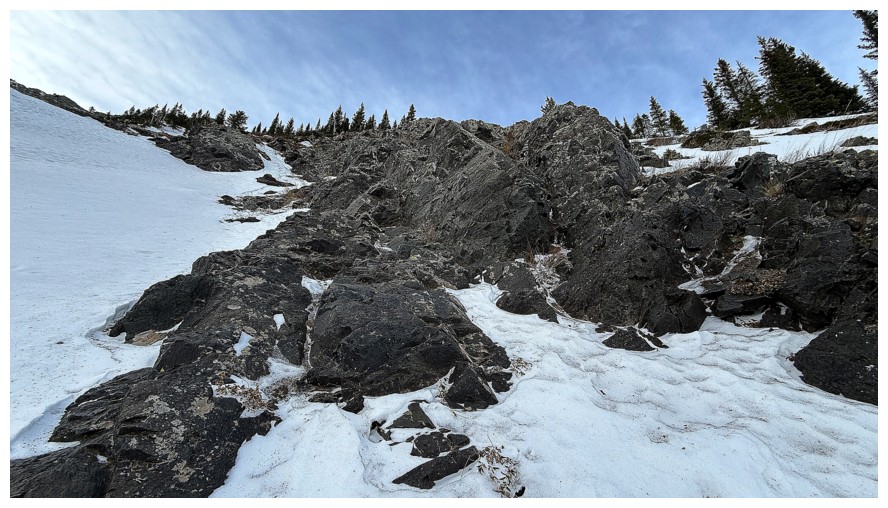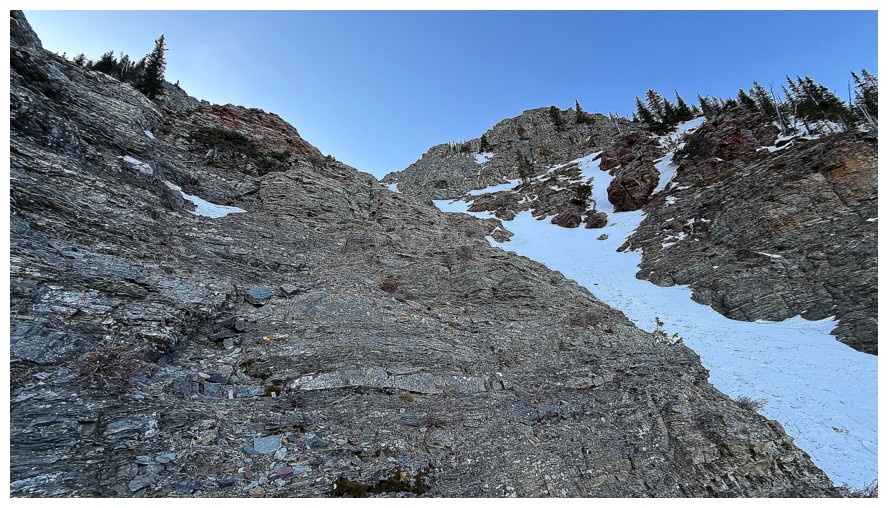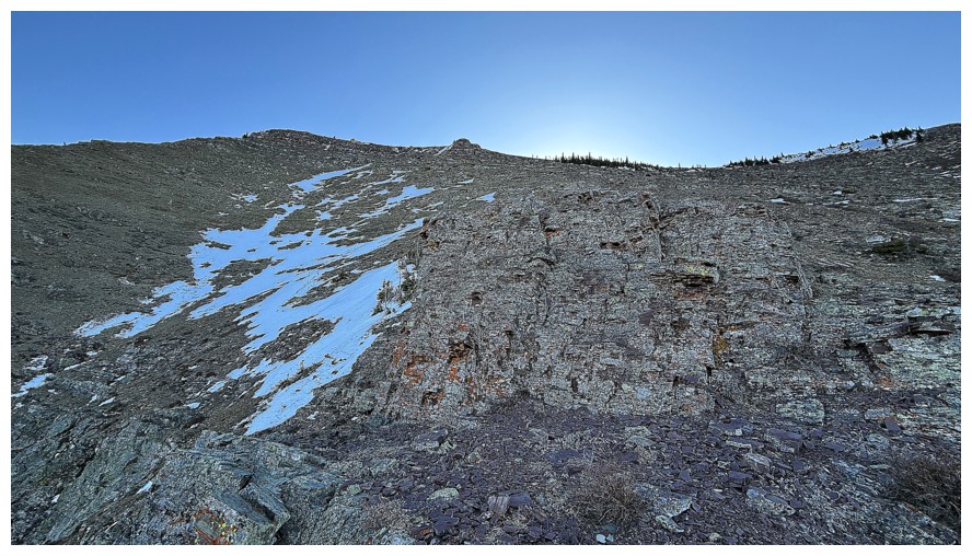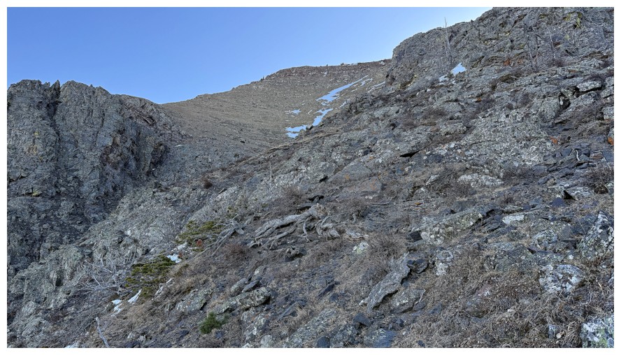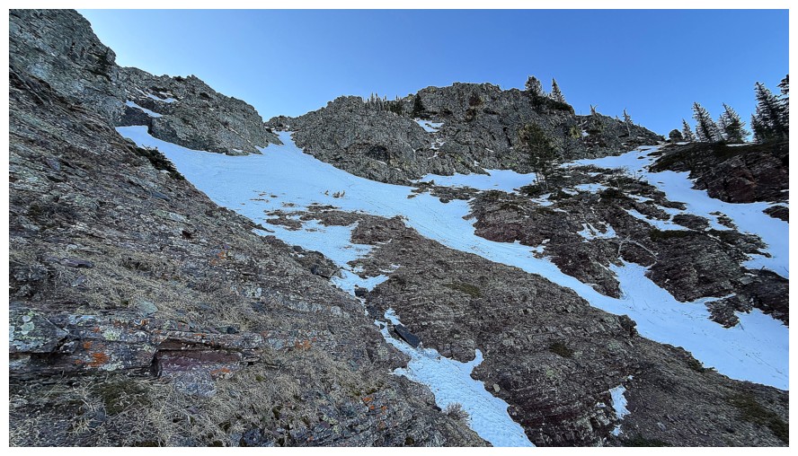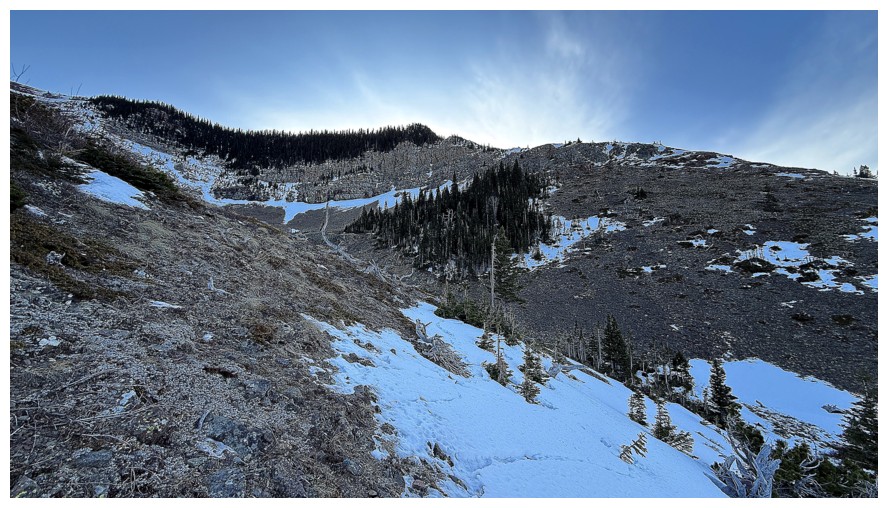 Instead of gaining the ridge, I'll traverse under the rock band towards the summit