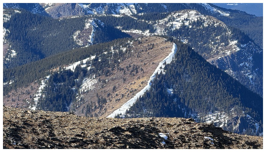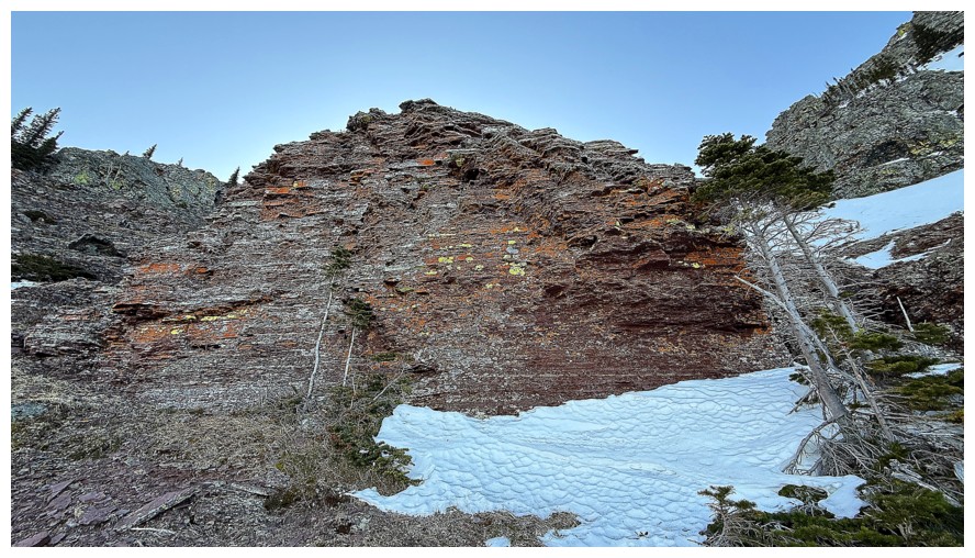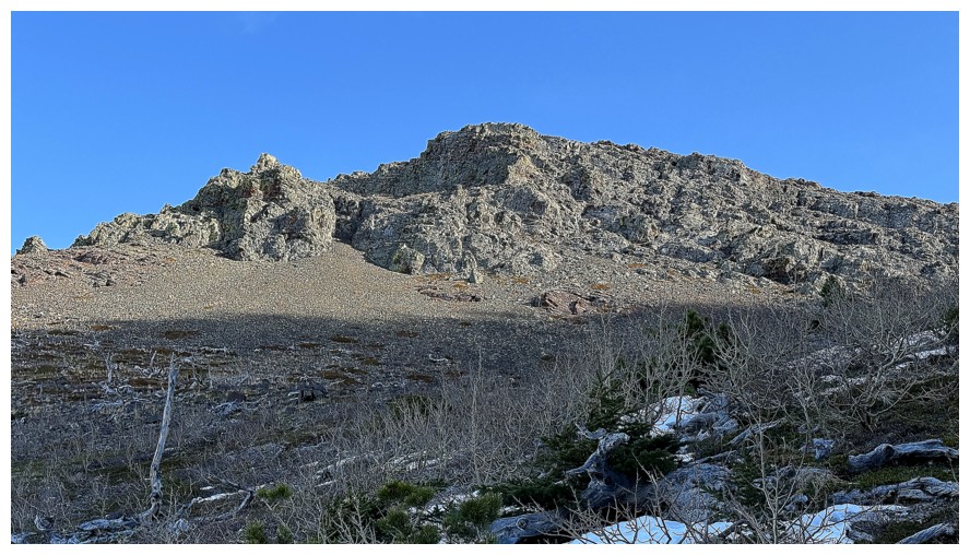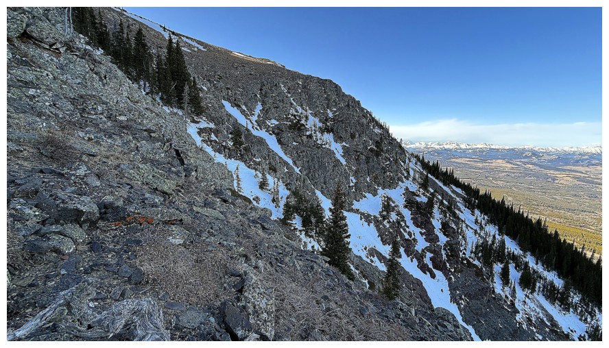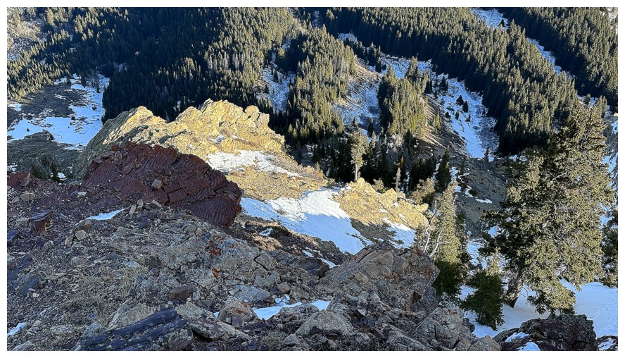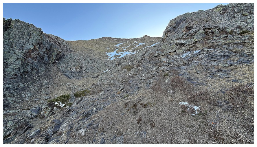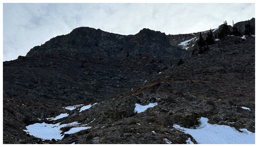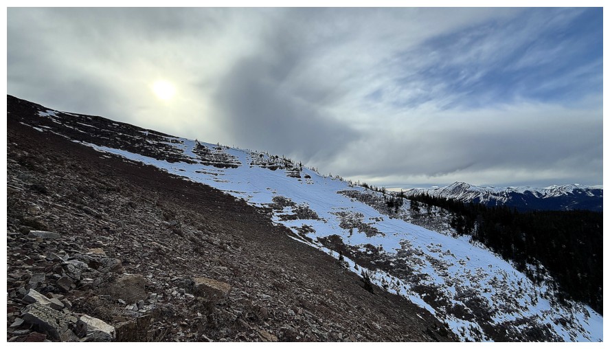 Instead of gaining the ridge, I'll traverse under the rock band towards the summit