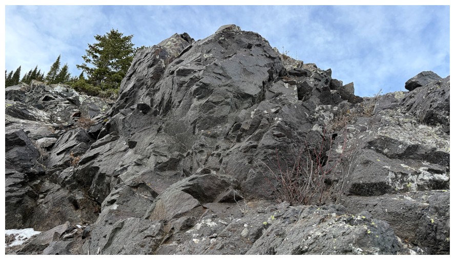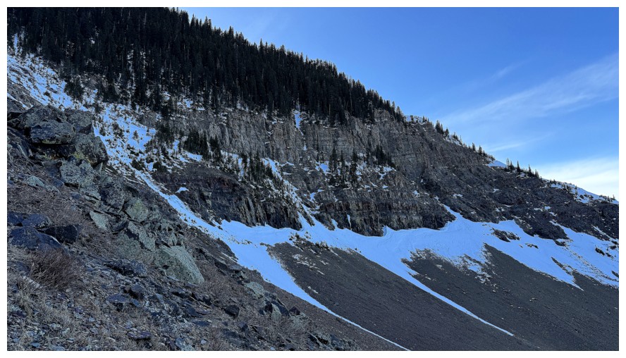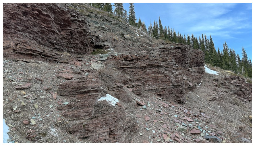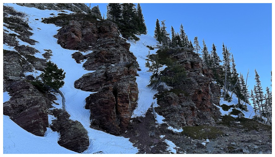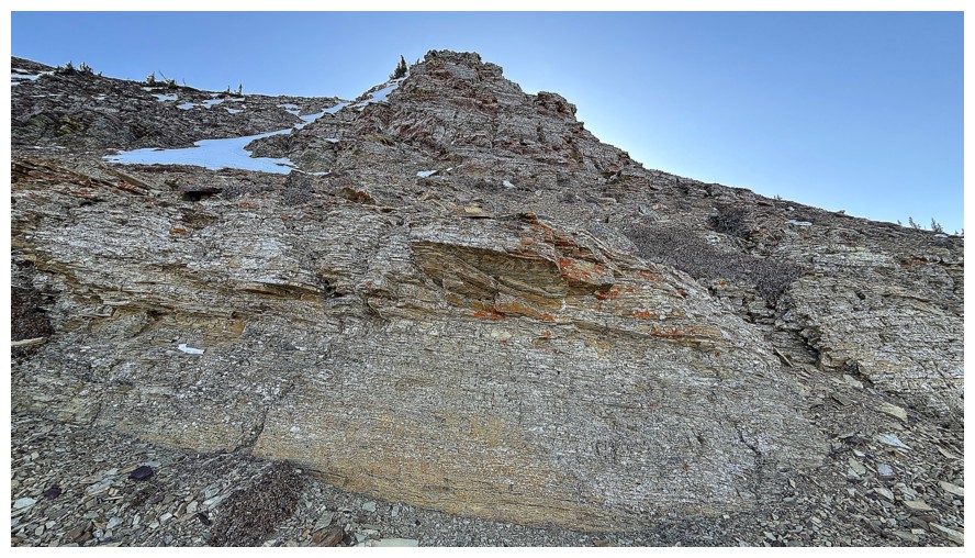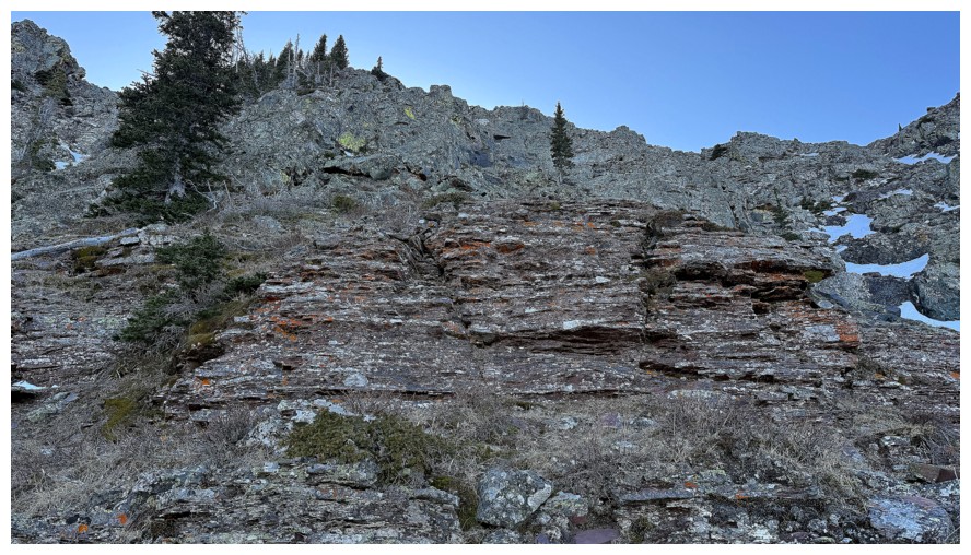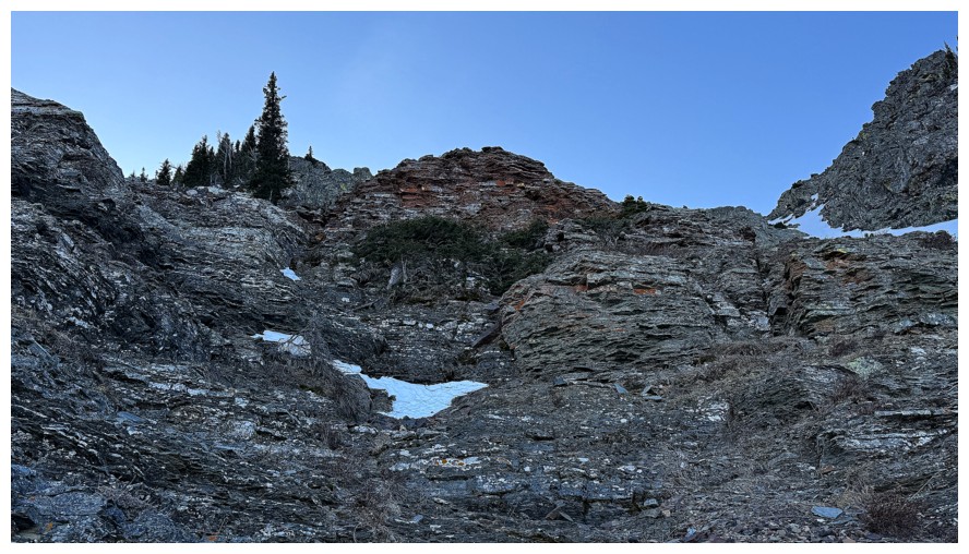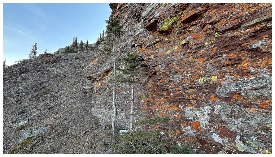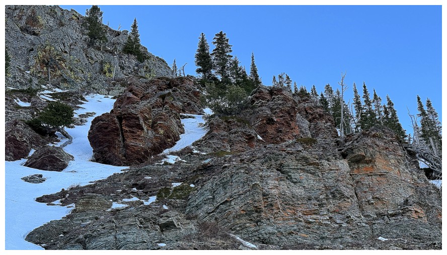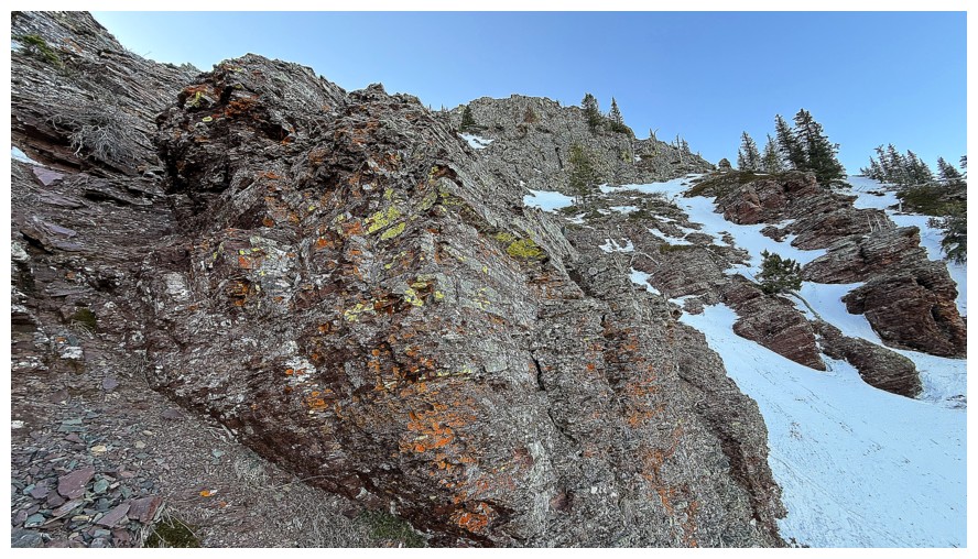 most of the way up the mountain, cutting through several beautiful bands of exposed
