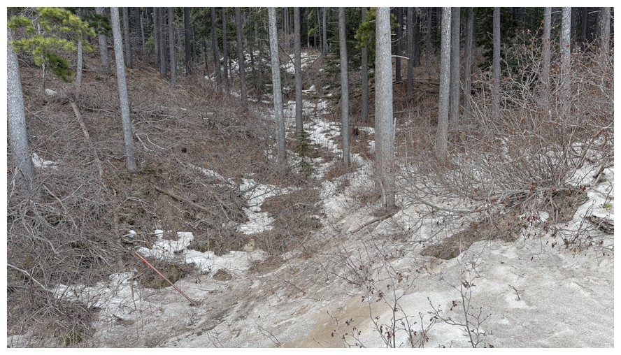 shallow drainage to ascend and started up. The lack of snow for the first day