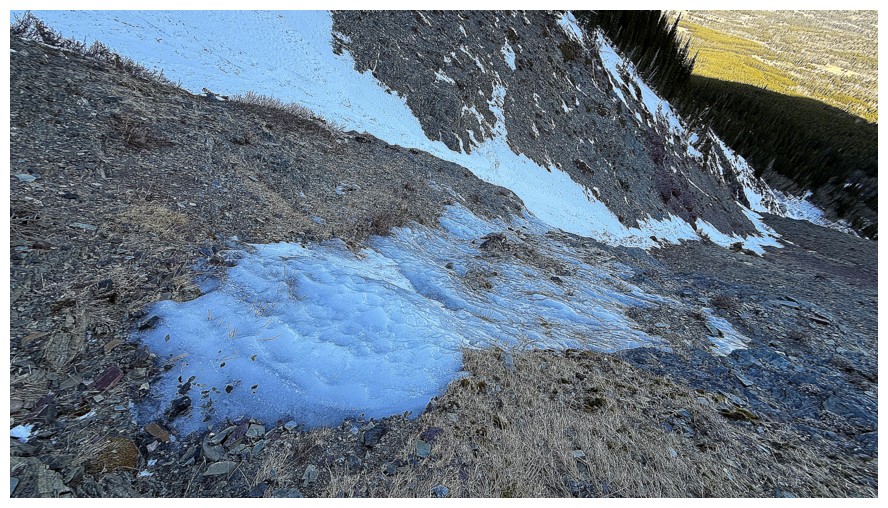 I was surprised to find that the snow in the gully was rock hard - as in, concrete! My hiking