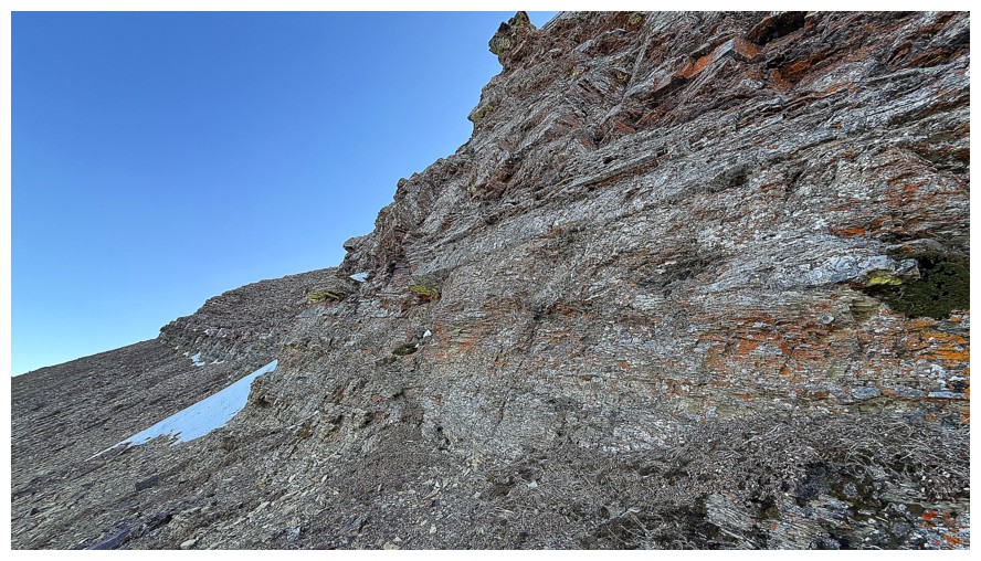 tedious scree slope and then another rock band lining the summit ridge. I chose