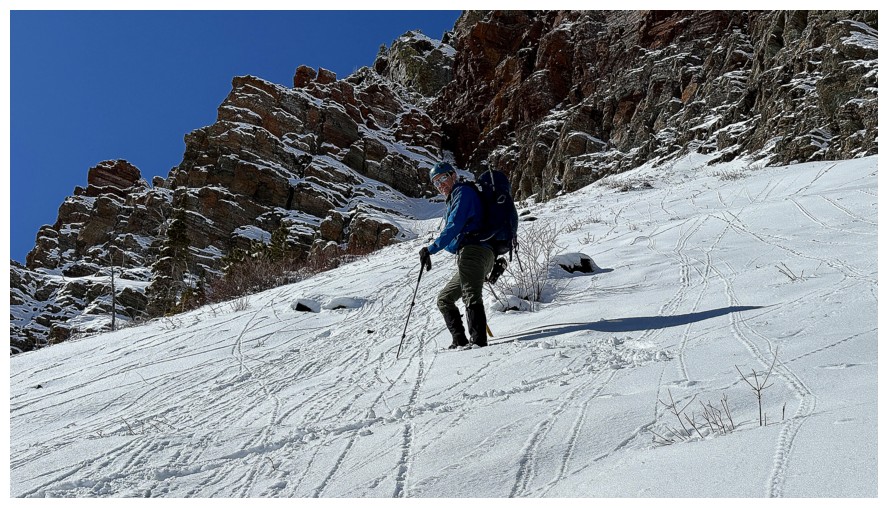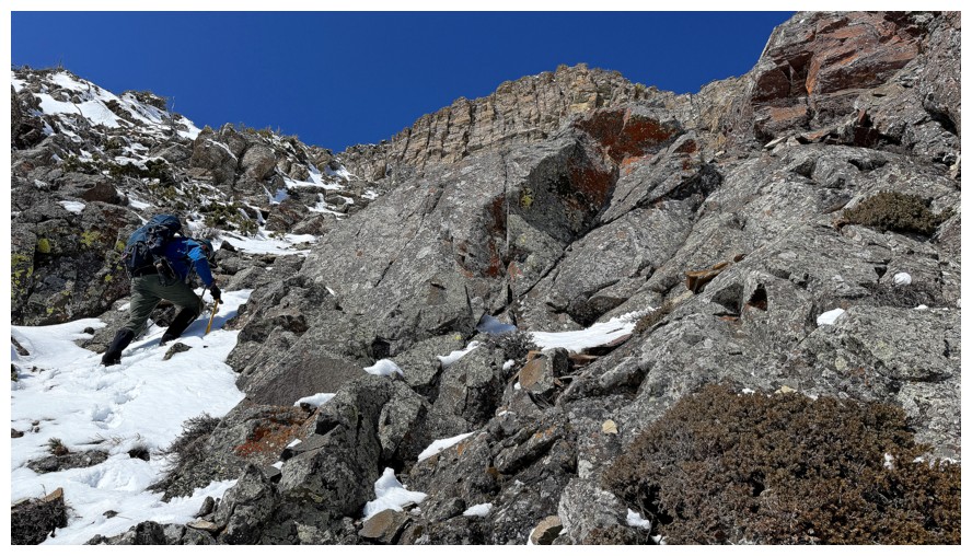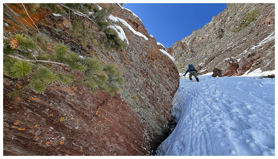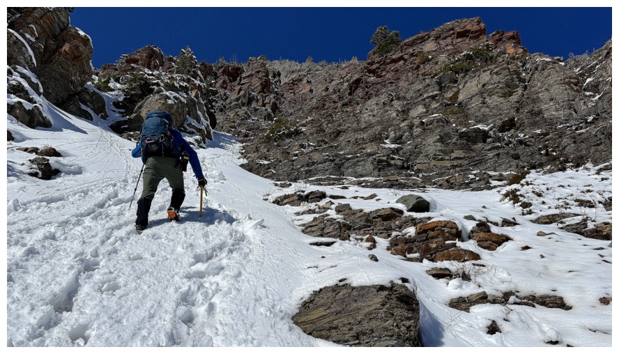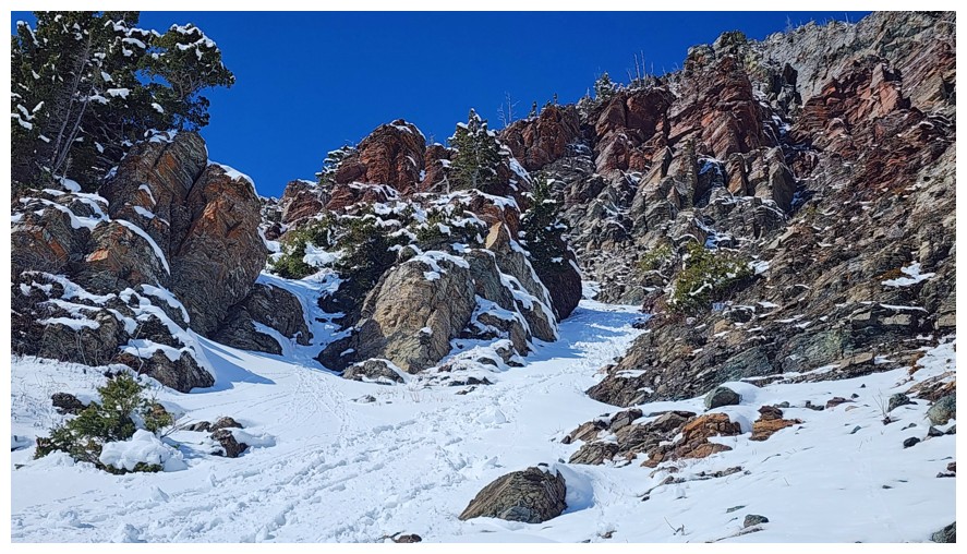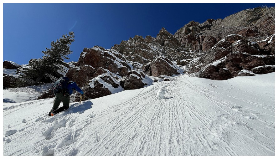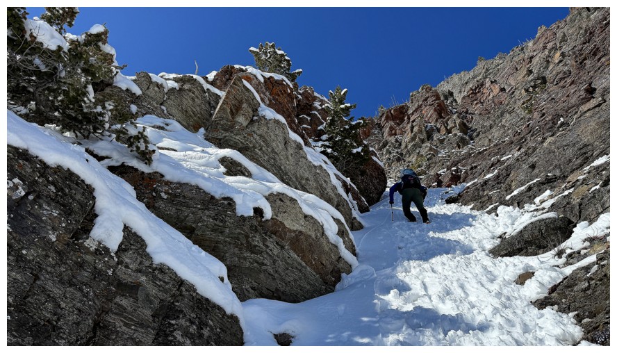 Dave had spotted a snow couloir that could be the ticket. That couloir was not