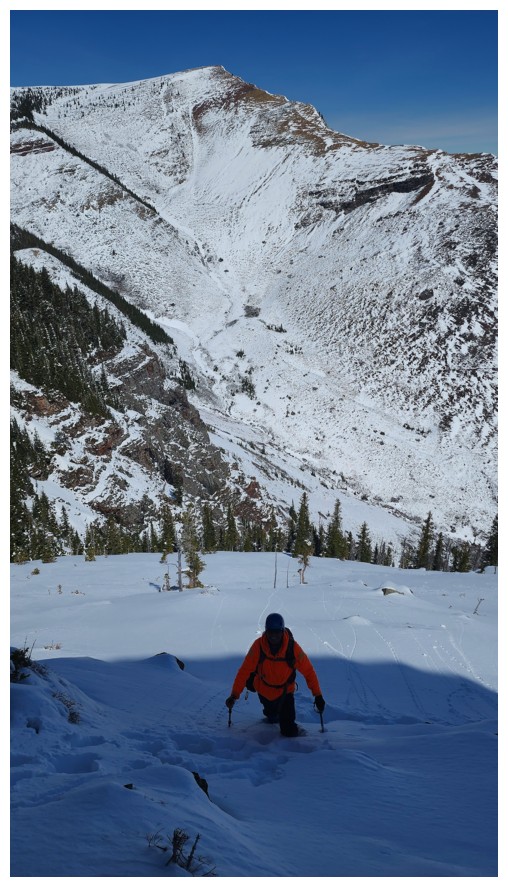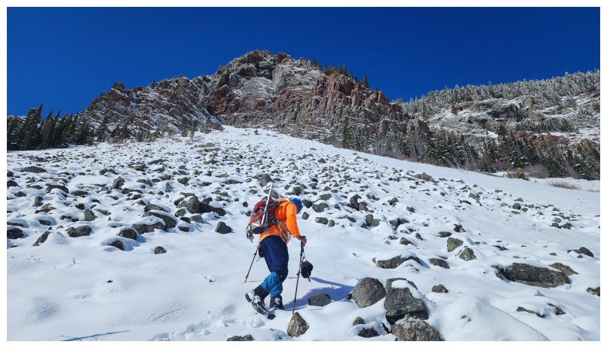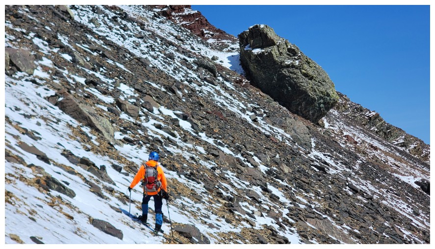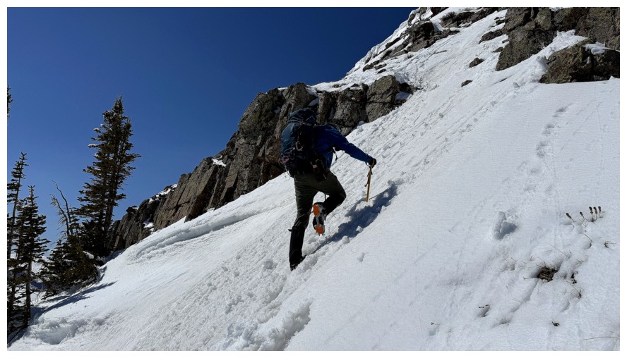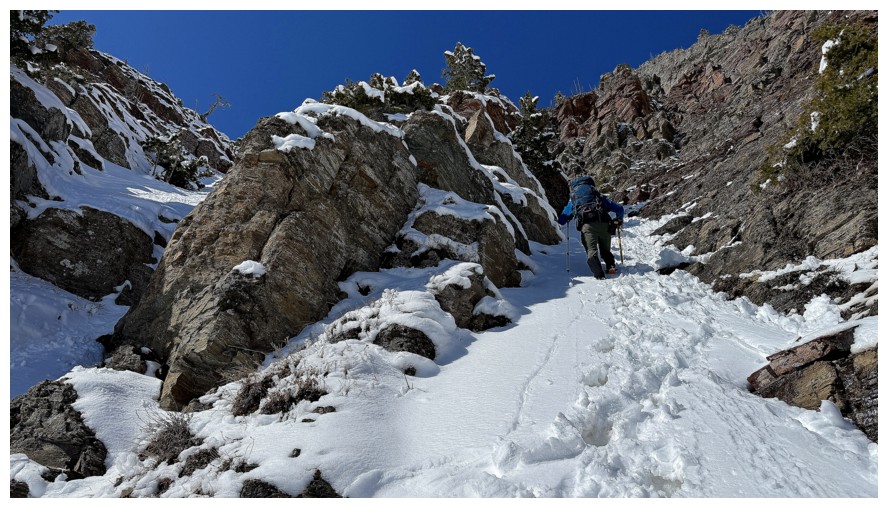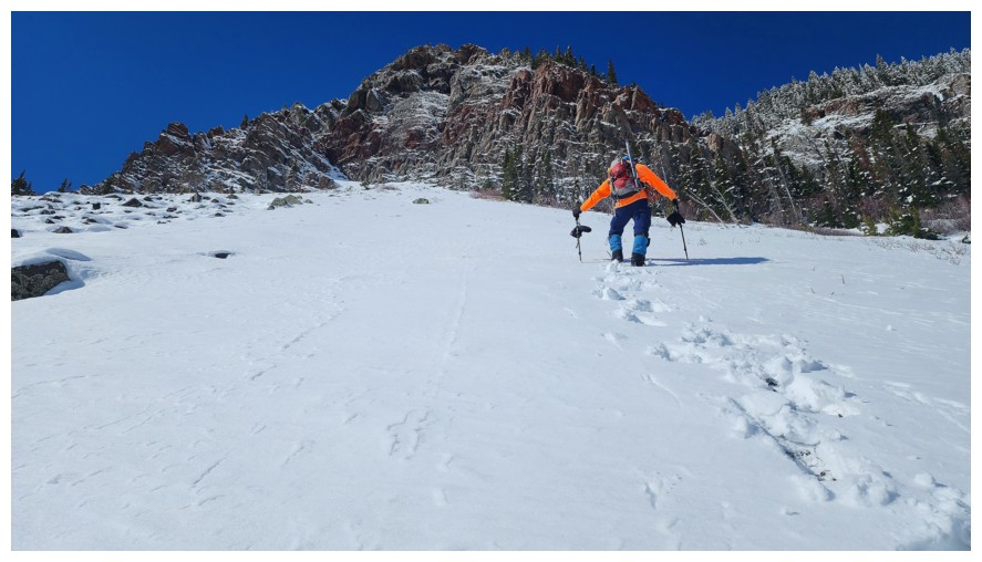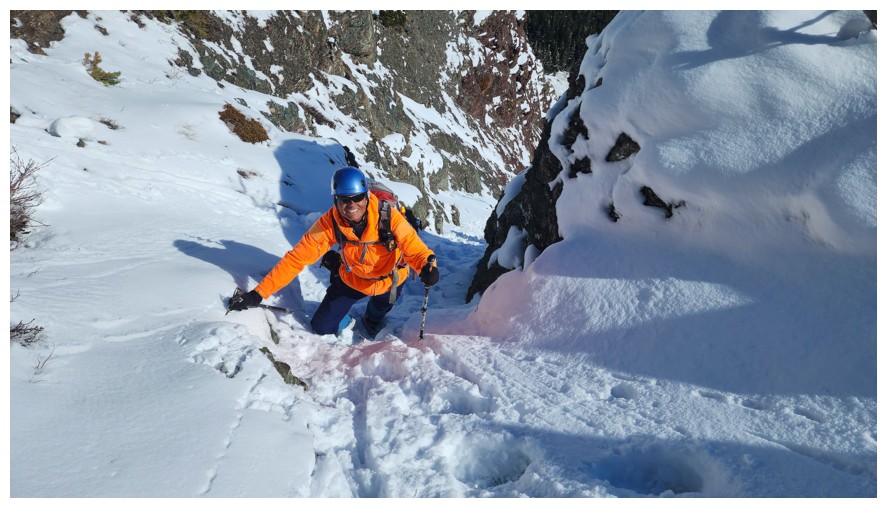 Dave had spotted a snow couloir that could be the ticket. That couloir was not