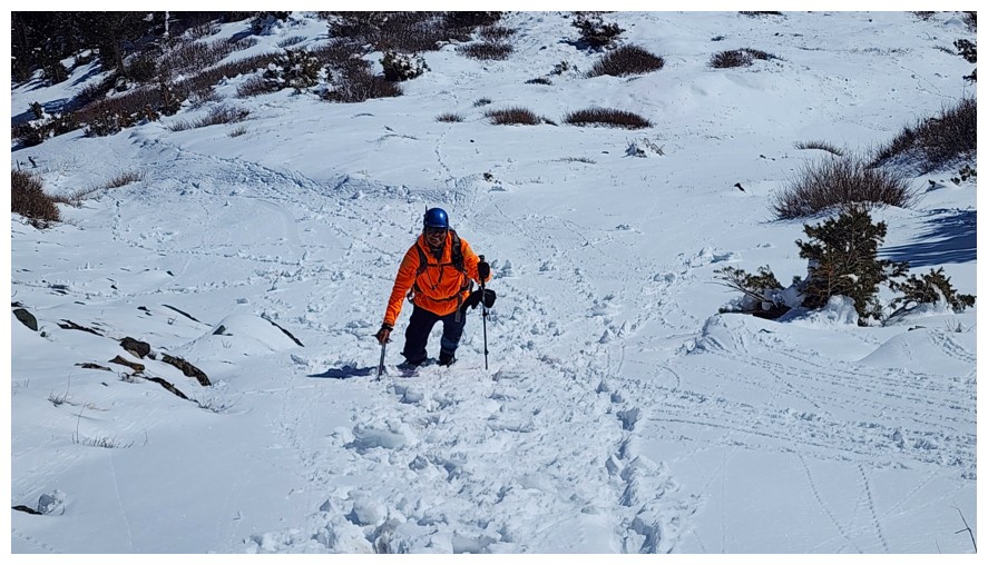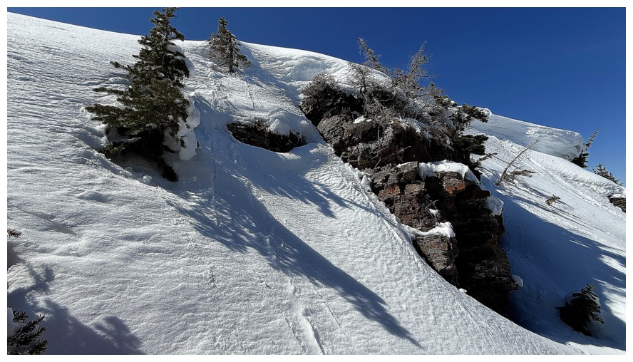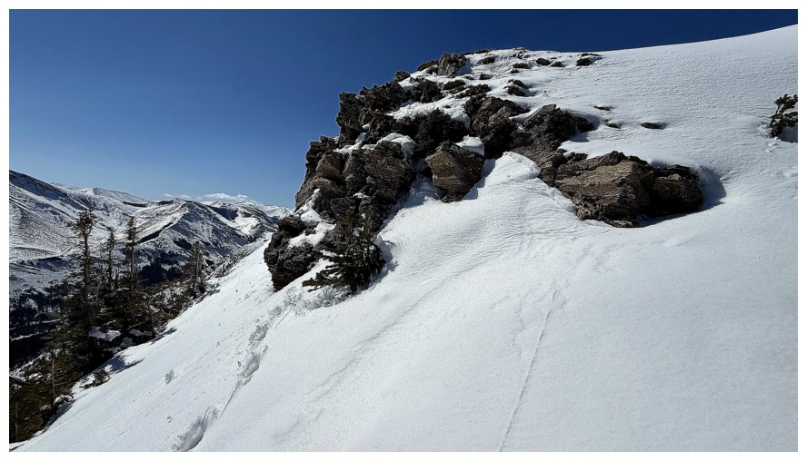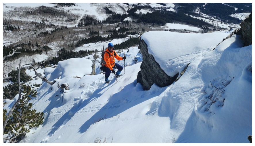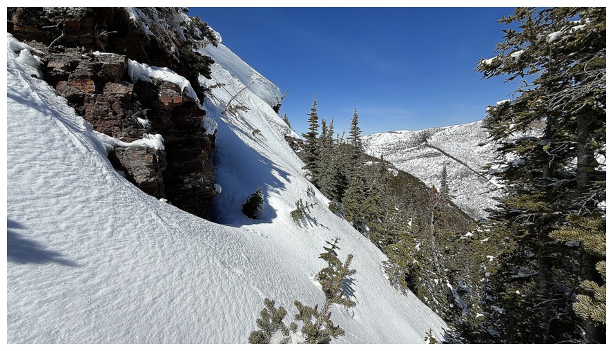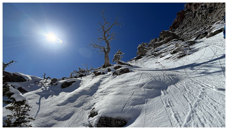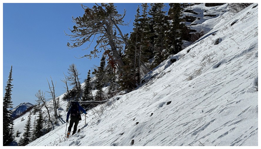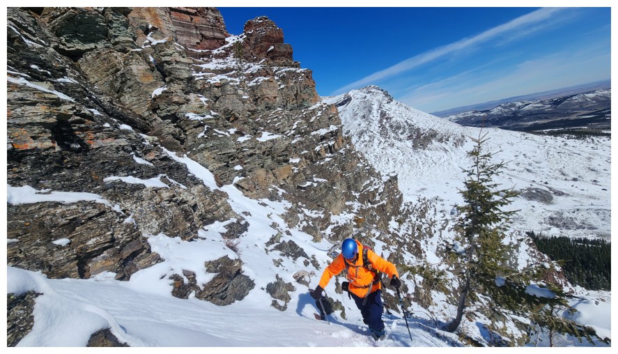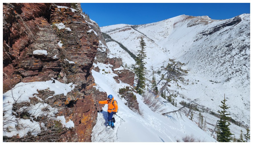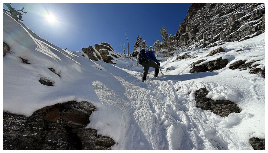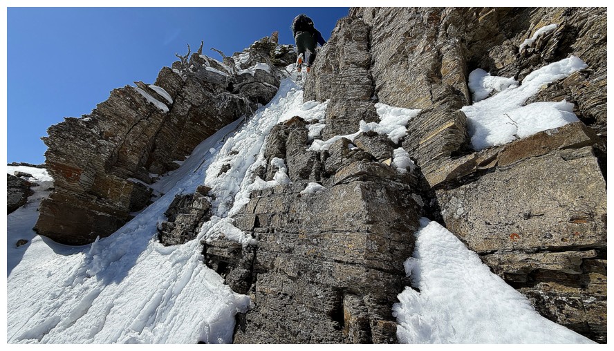 Dave picked a great line up the end of the rock band. Travel further right looked pretty sketchy.