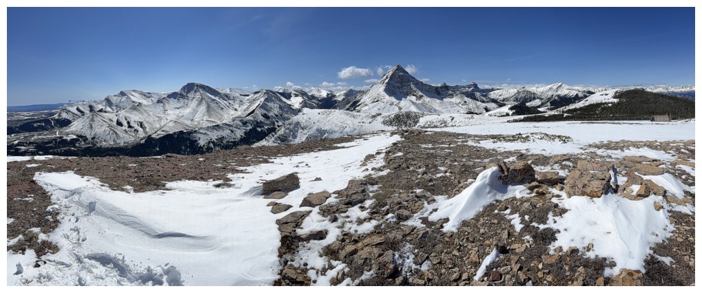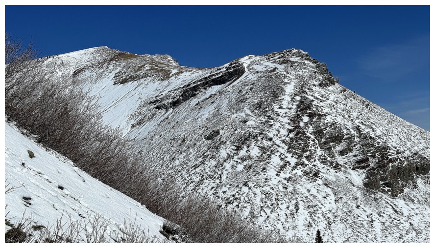 The southwestern-most summit of Pincher Ridge (left) and the summit of Victoria Ridge near the right - a loop route taking in all is highly enjoyable (and very tiring!).