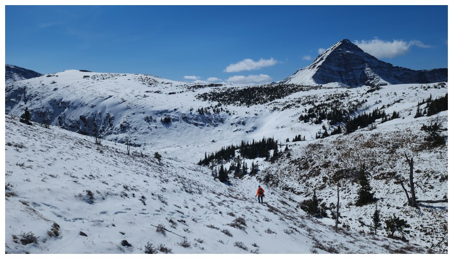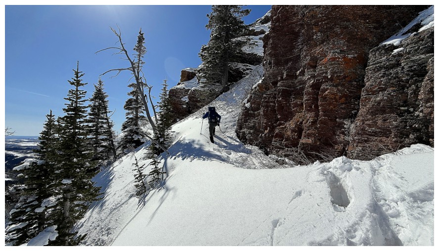route. The heavily treed north route could have been a post-holing nightmare, with
