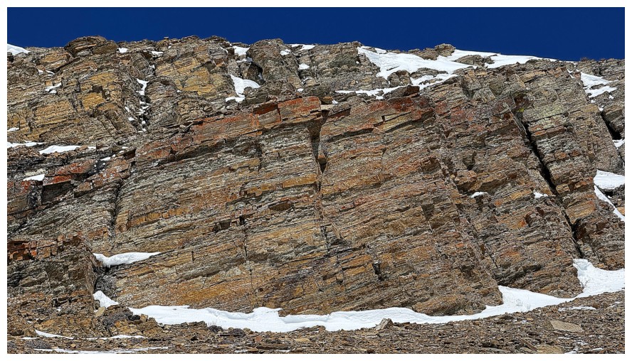in the form of an immense and gorgeous light brown/orange, vertical rock band.