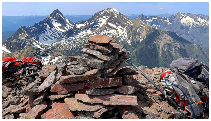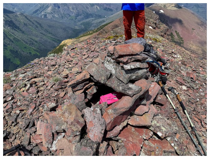 Same as above, but from the summit, and with the newly construction cairn (photo by Ephraim)