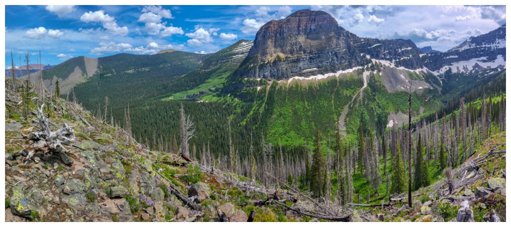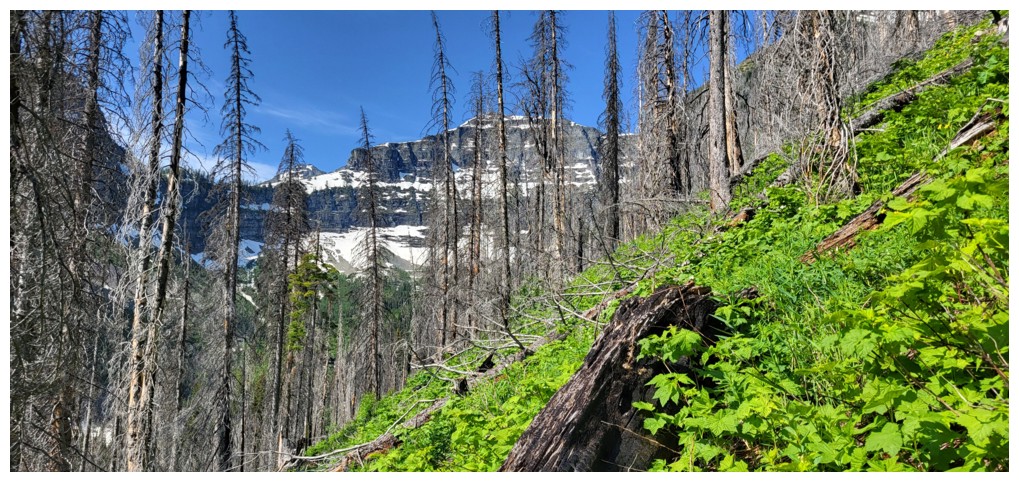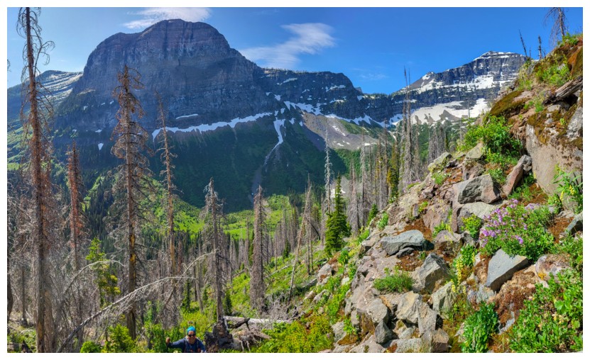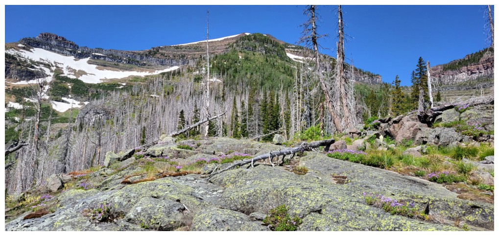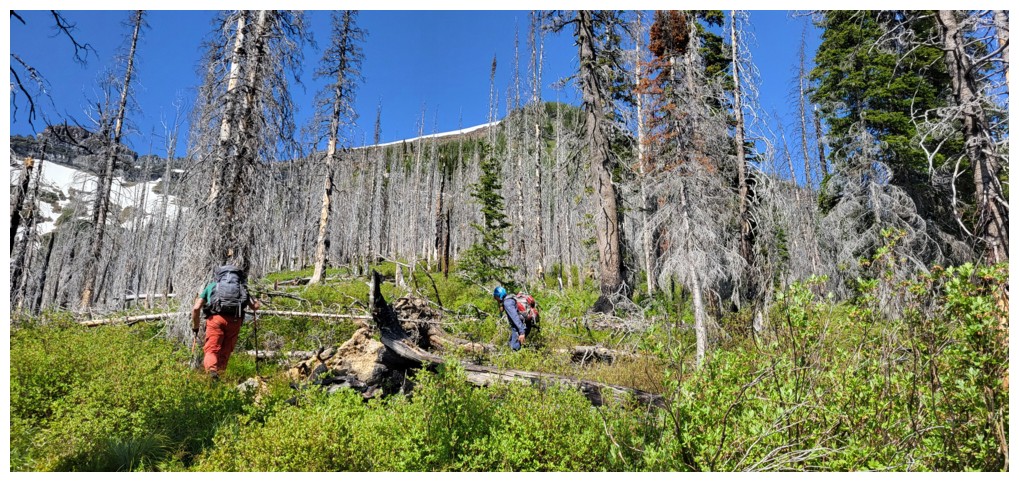 from the pass, we arrived at an open area near Akamina Creek, where we could
