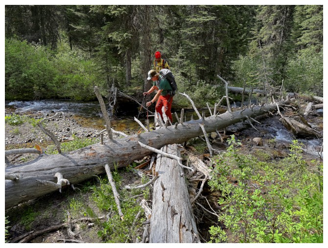 crossing of Akamina Creek was required. Ephraim had wisely brought approach