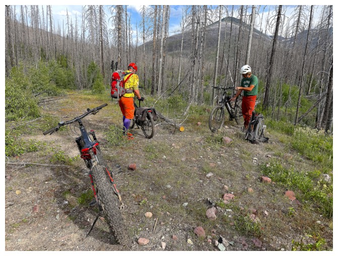 set and so just before 6 am we set off towards Akamina Pass, all riding ebikes.