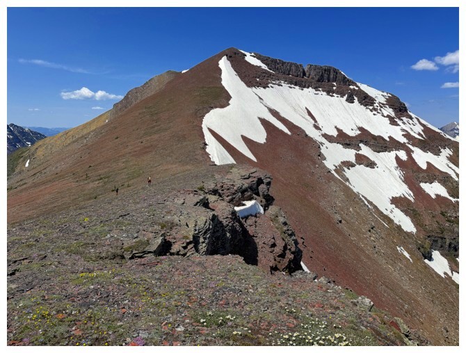 King Edward Peak (left) and Starvation Peak sit at the west end of Kishinena Ridge (photo by Ephraim)