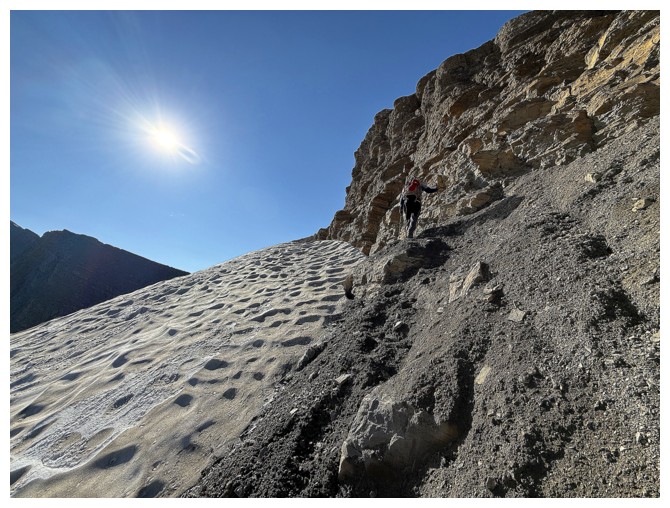 Minor detour to check out the remains of what was once a decent-sized glacier on the northeast side of the first pass